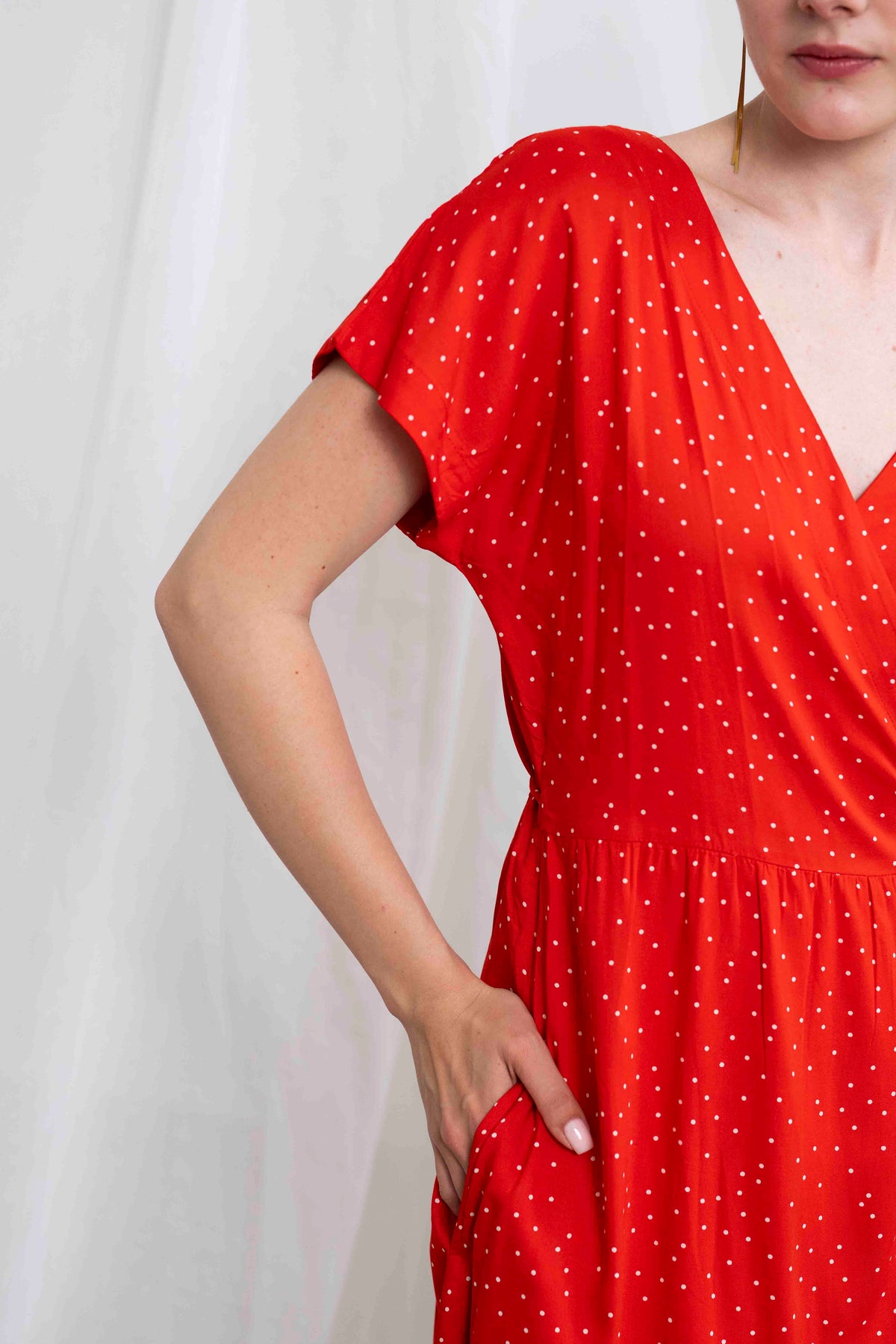 שמלת גיישה באורך מידי, מעוצבת בהשראה יפנית, בגזרת מעטפת סופר מחמיאה ומשוחררת! בעלת חגורה עוטפת, שרוולי חצי מחמיאים, וכמובן, זוג כיסים צדיים. שמלה נשית ואלגנטית, מלאת נוכחות, מושלמת ללוק יומיומי ורומנטי או ללוק ערב סטייליסטי שיגרוף מחמאות.