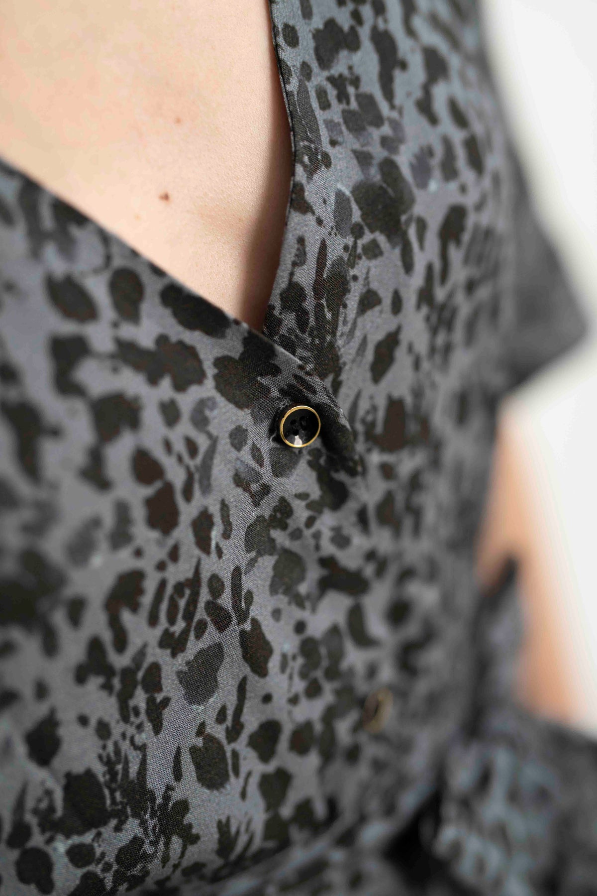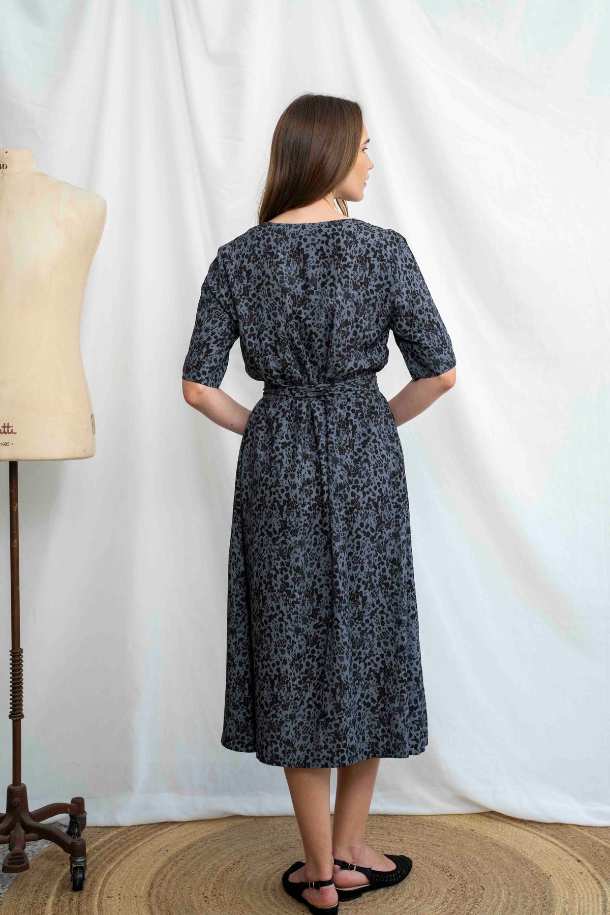 שמלת מיכאלה מנומר מונוכרום לוקחת את ההדפס החייתי הקלאסי ומרככת אותו עם פלטת צבעים מאופקת ומעודנת: שחור-אפור קריר שמעניק לשמלה מראה אלגנטי, עירוני ובלתי מתאמץ. הדפס הנמר המרומז משתלב בתוך הטקסטיל כמו שכבת טקסטורה נוספת – מתוחכמת, לא רועשת – ומשדרת עוצמה שקטה.