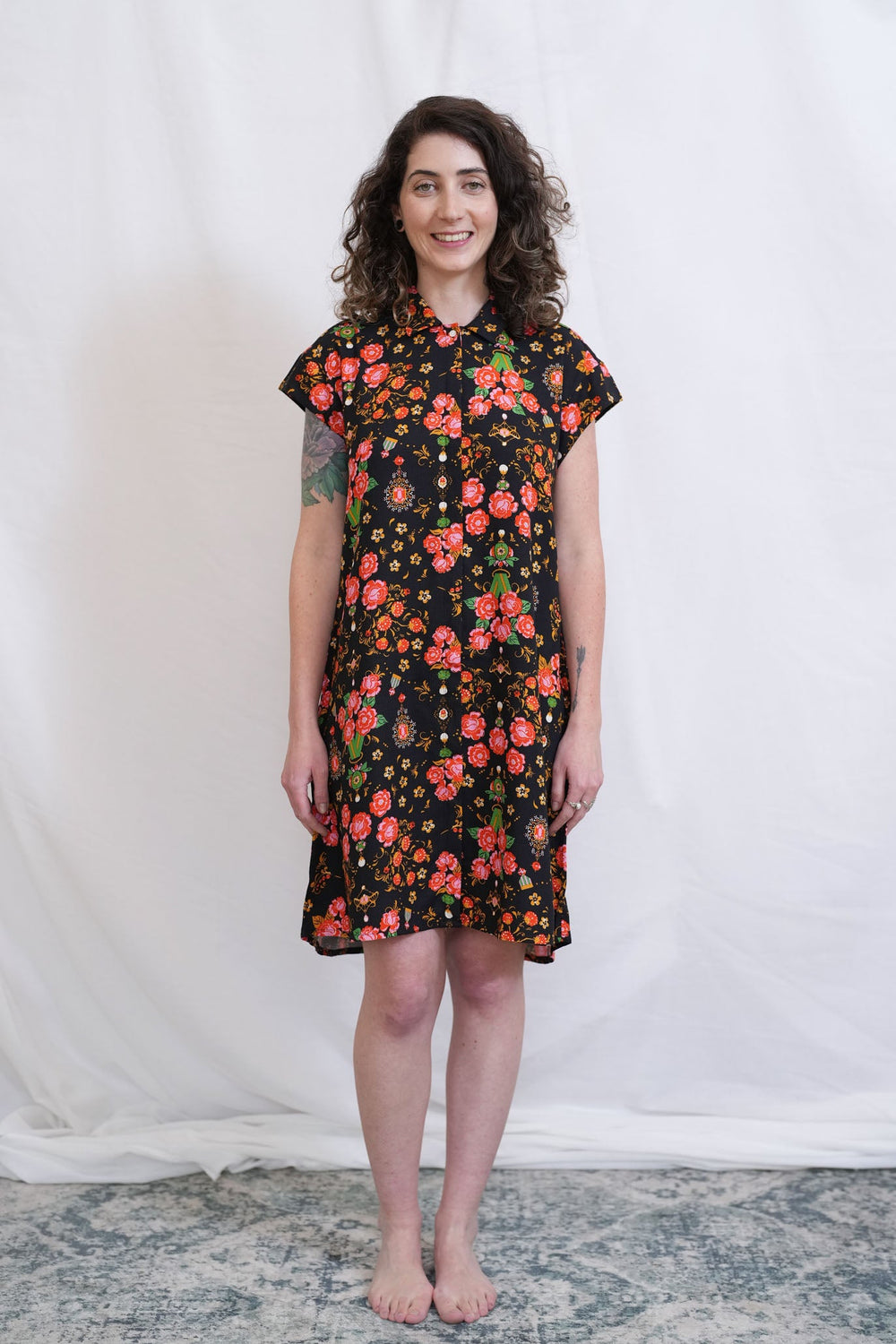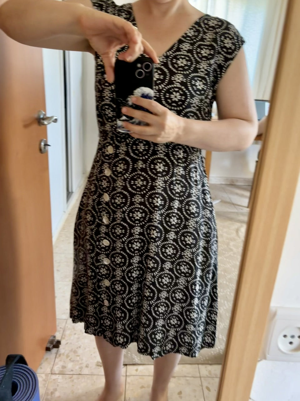 שמלת אווה קלאסית פרחים שחור לבן S