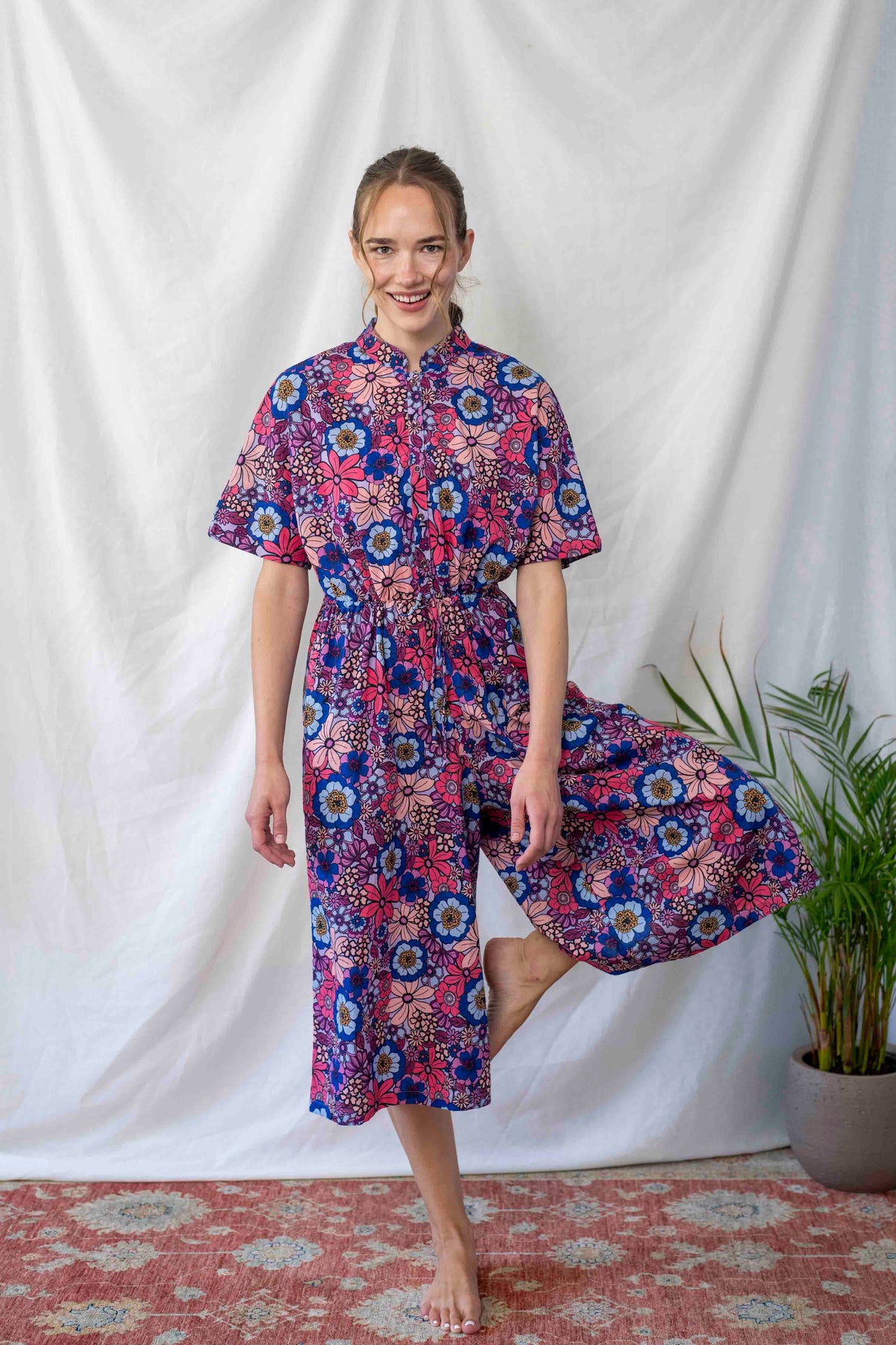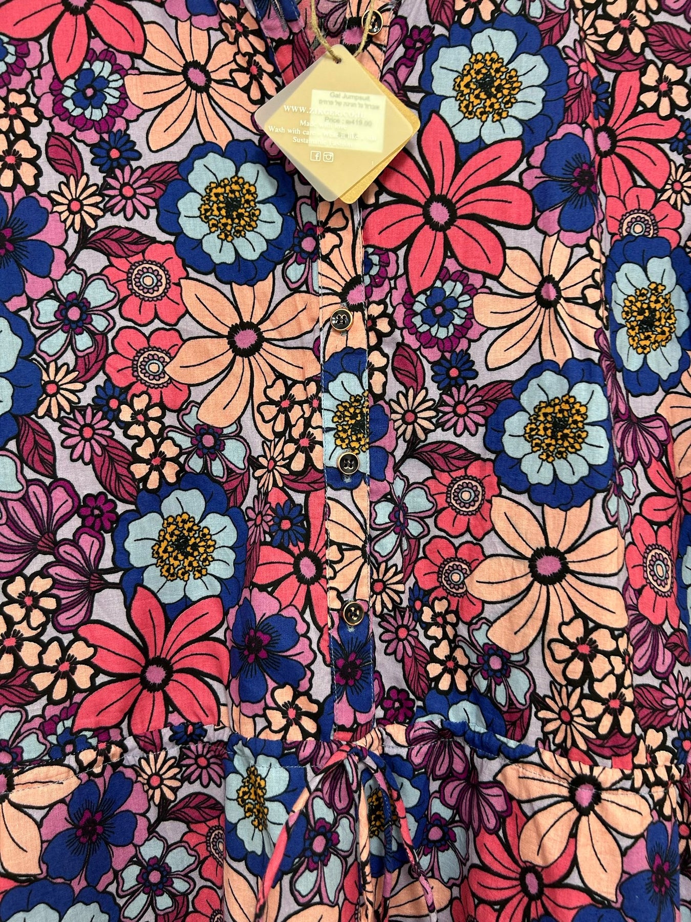 אוברול גל חגיגה של פרחים הוא חגיגה לעיניים! הצבעוניות, הפרטים הקטנים והעדינות של ההדפס, בבד ויסקוזה מלטף.. פשוט שלמות. פריט מרענן לכל מלתחה.