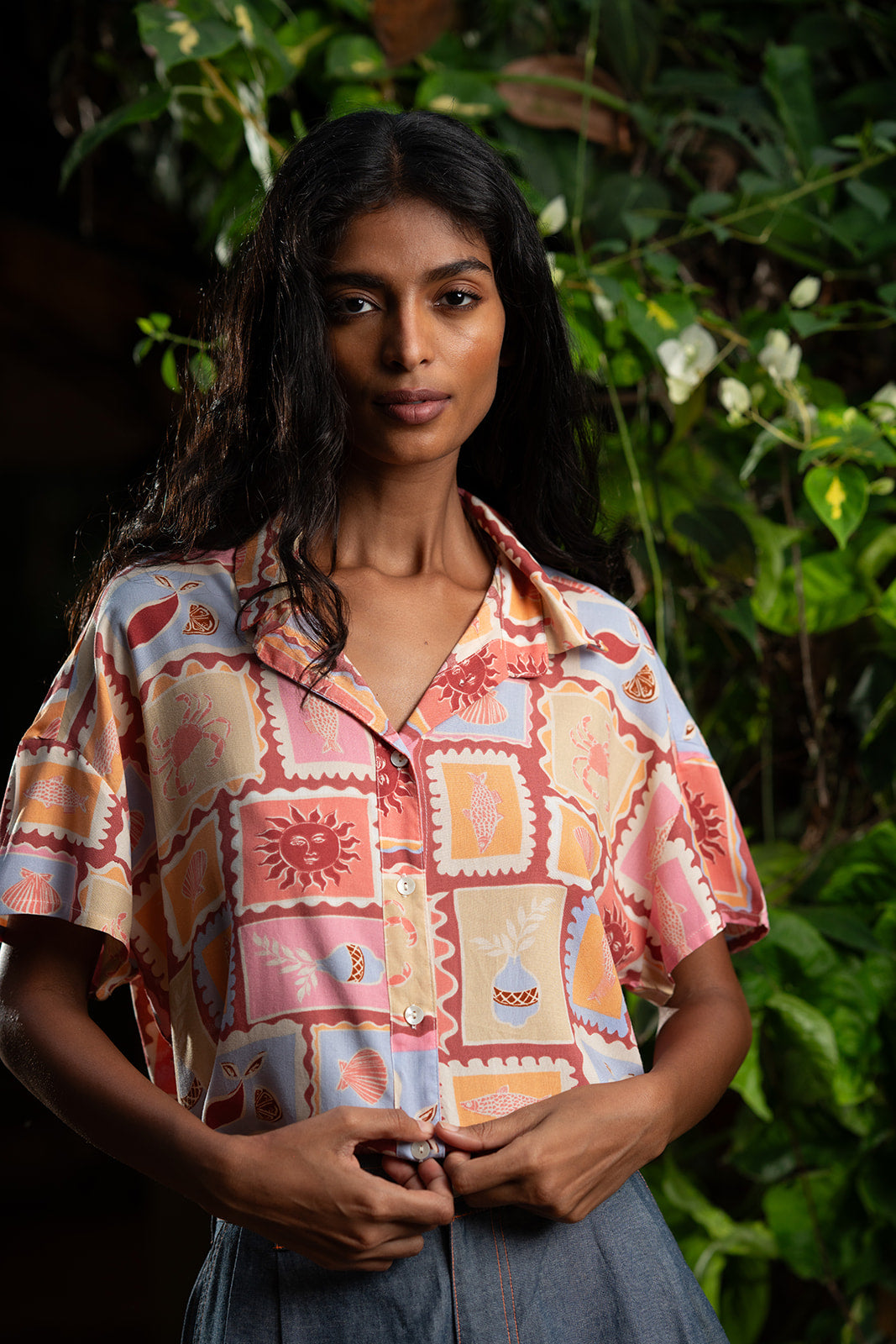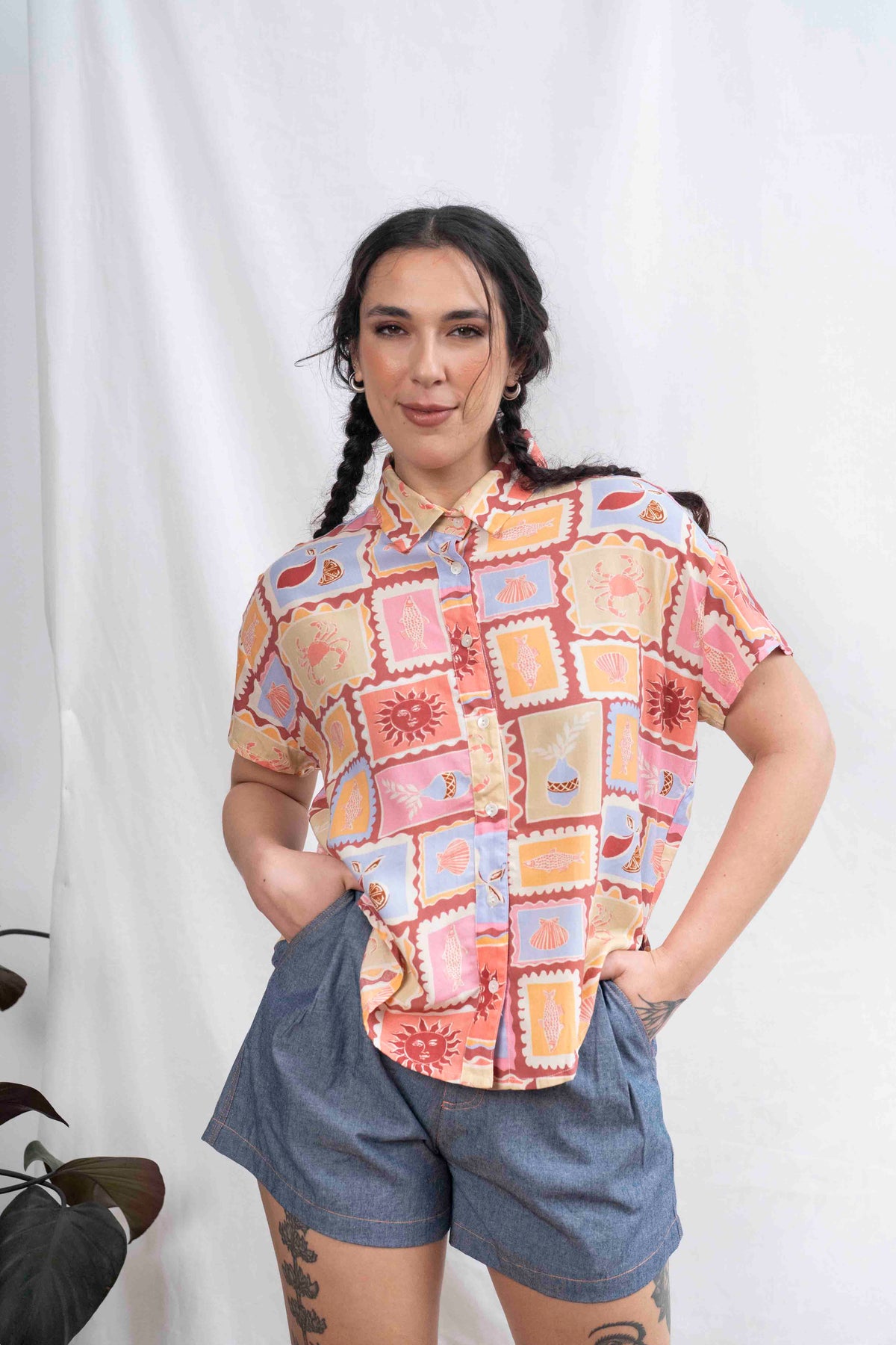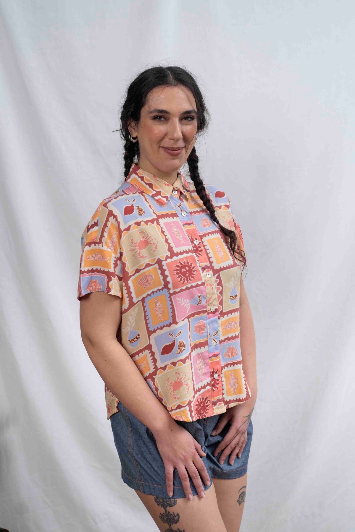 חולצת רון חופשה ביוון היא החופש בהתגלמותו, מעוטרת בשמשות, צדפים ועוד ובעלת צבעוניות חמימה ומרגיעה ובד ויסקוזה רך ומהמם.