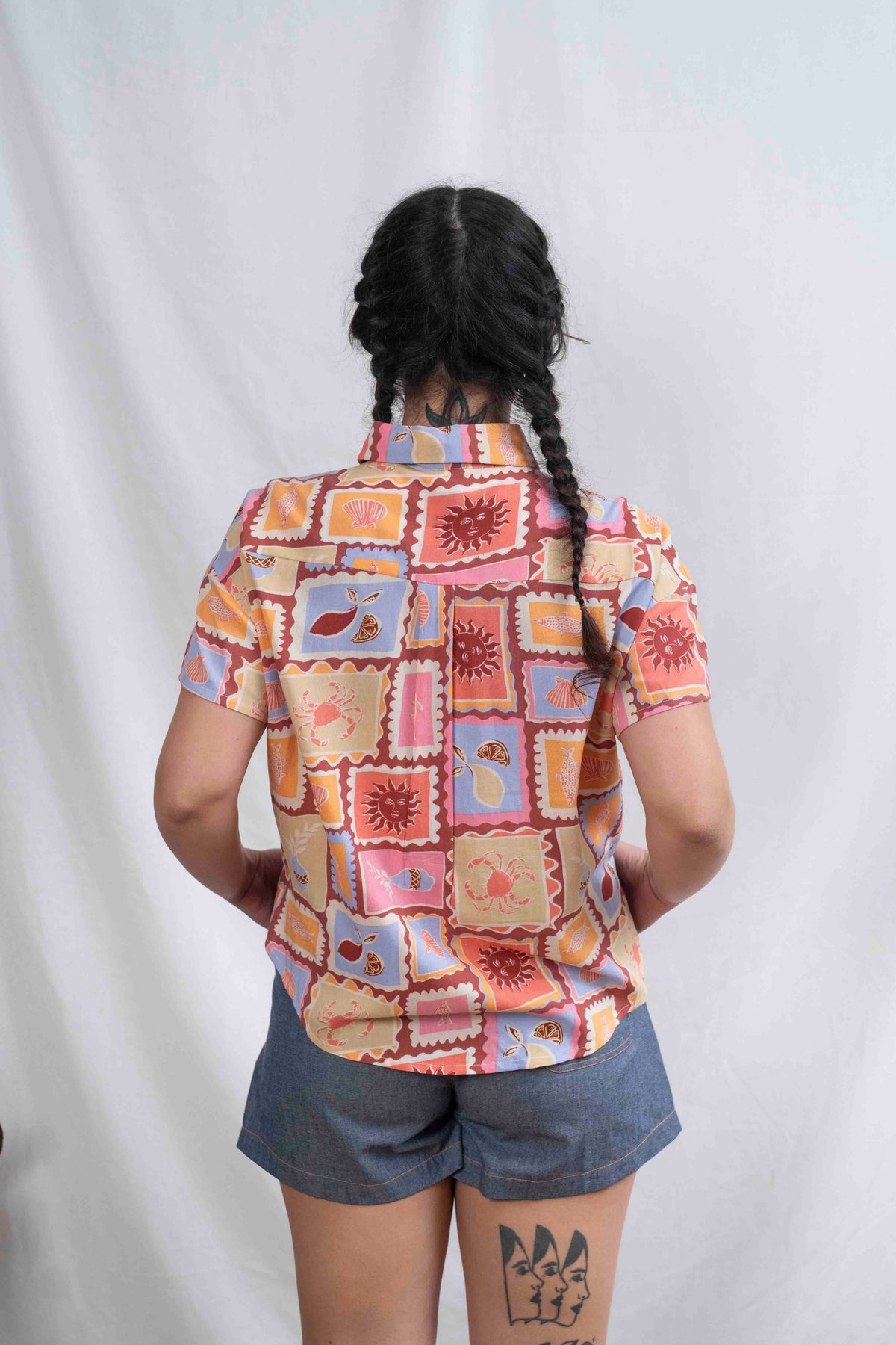 חולצת רון שומרת על המבנה האהוב שלה – גזרת אוברסייז נינוחה, שרוולים קצרים עם כתף מעט שמוטה, צווארון מחויט וכפתורים לכל האורך. השסעים הקטנים בצדי המכפלת מוסיפים חופש תנועה וזרימה עדינה. זו חולצה שתמיד עושה רושם – בין אם תשלבי אותה עם מכנסיים מחויטים או ג'ינס פשוט – היא הופכת כל אאוטפיט לאמירה.