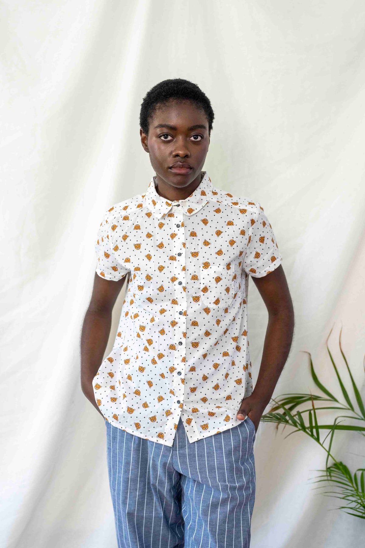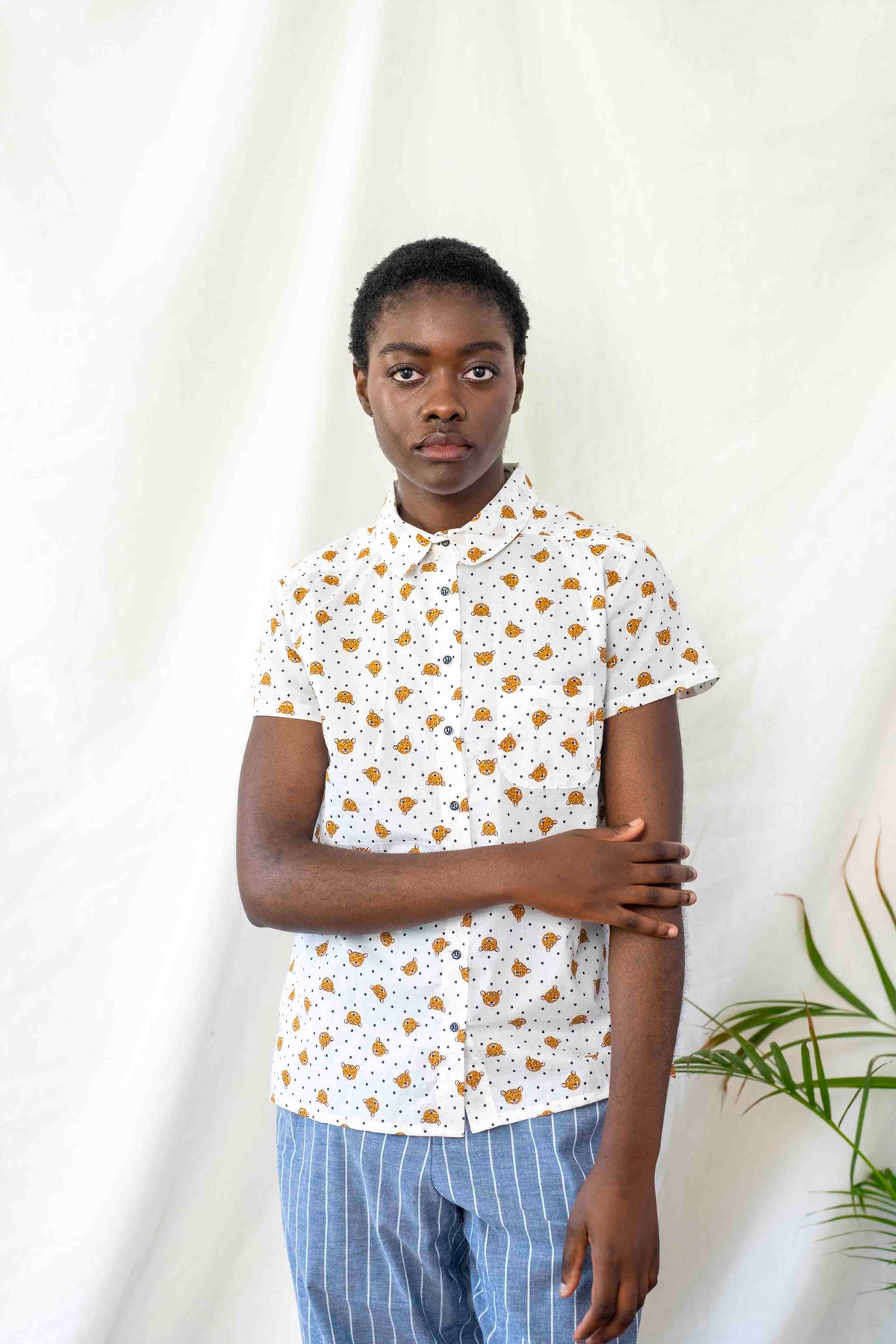 חולצת דריה גורים ונקודות היא אחת החולצות הכי מתוקות שאי פעם נולדה, עם רק לבן וראשי דובונים ונקודות פולקה קטנות.
