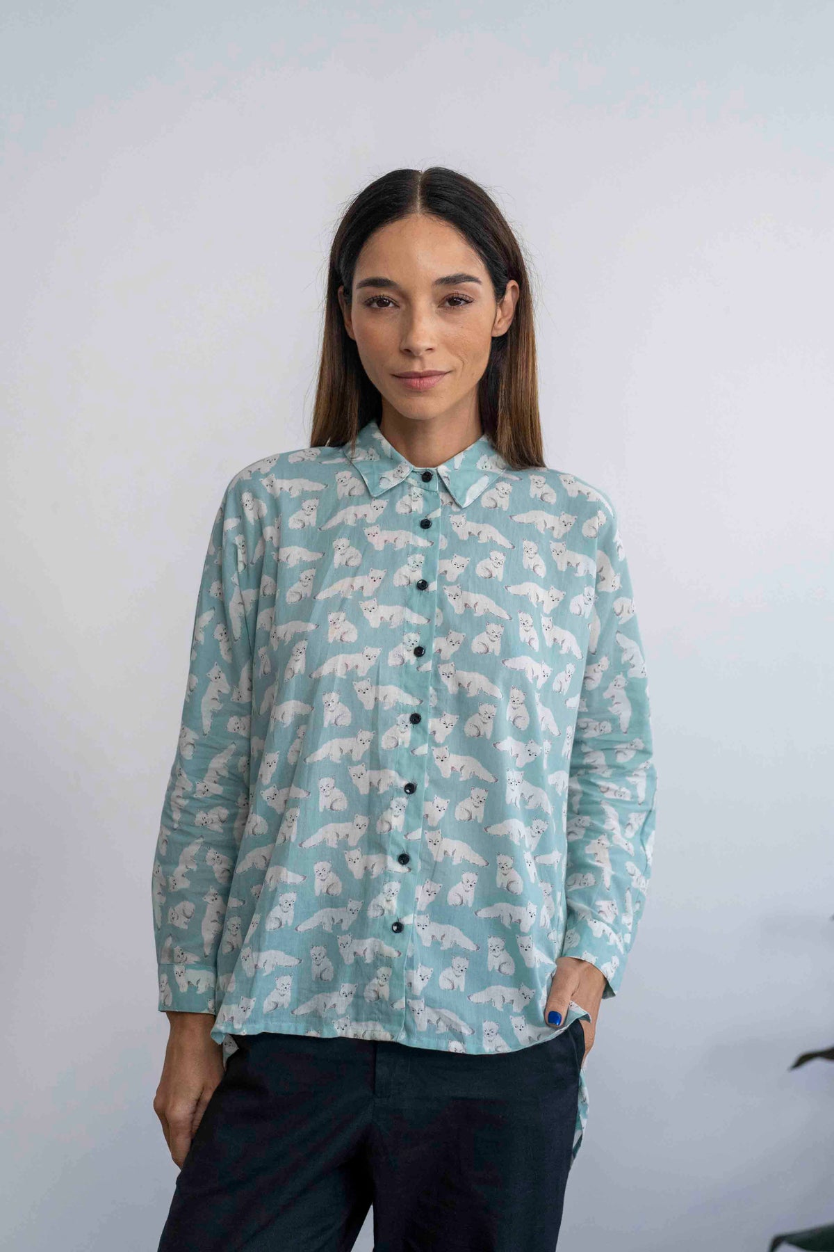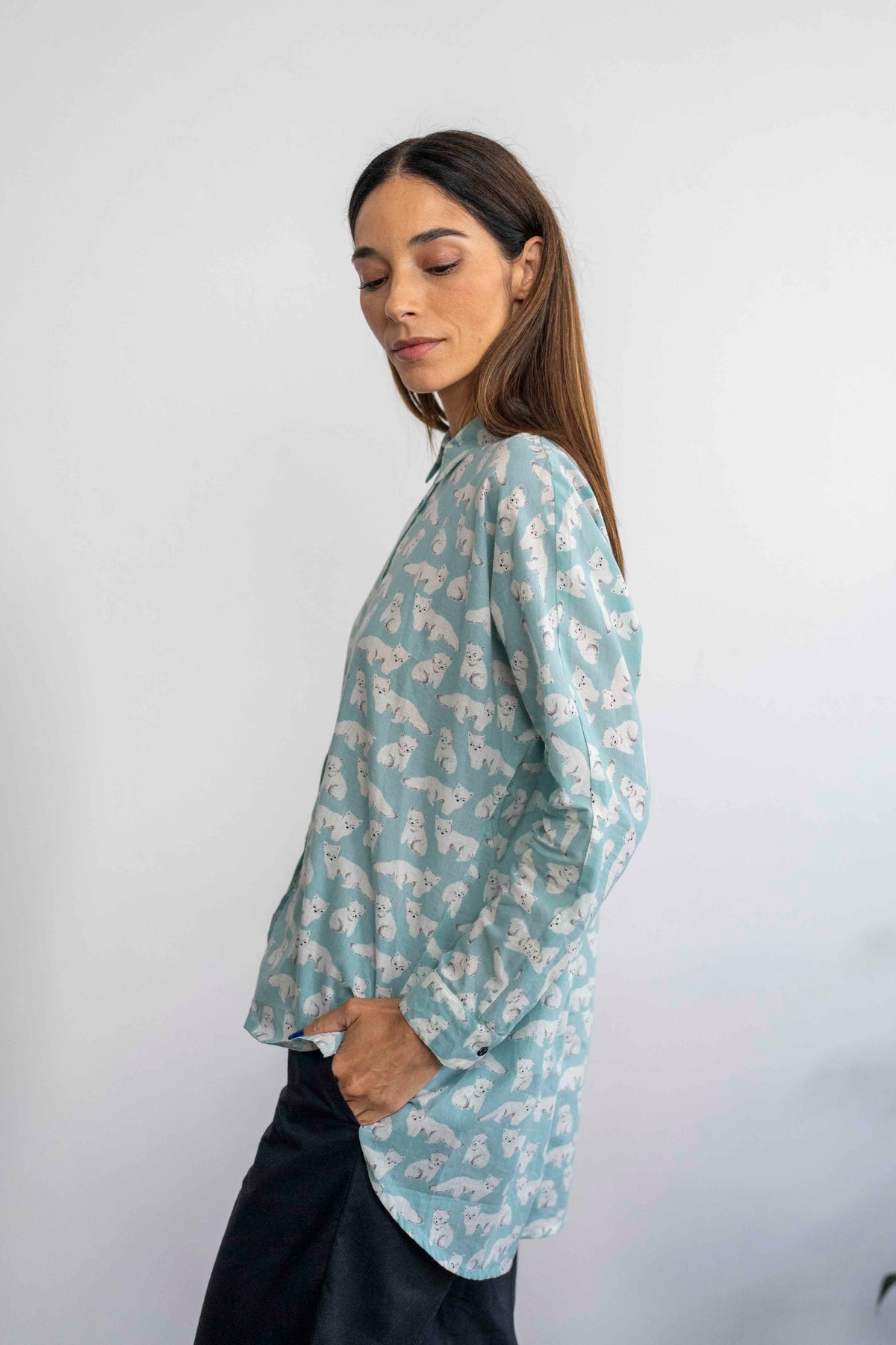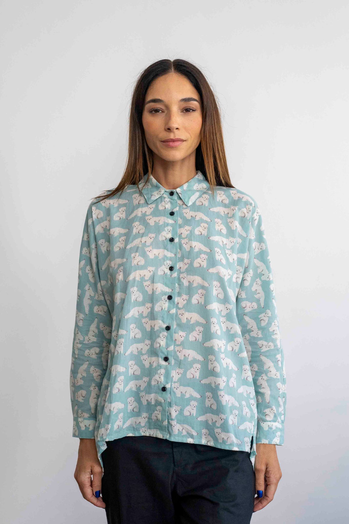 חולצת טוי בצבע תכלת אפרפר, עם מוטיב דובי קוטב לבנים, אין מתוקה כזו.