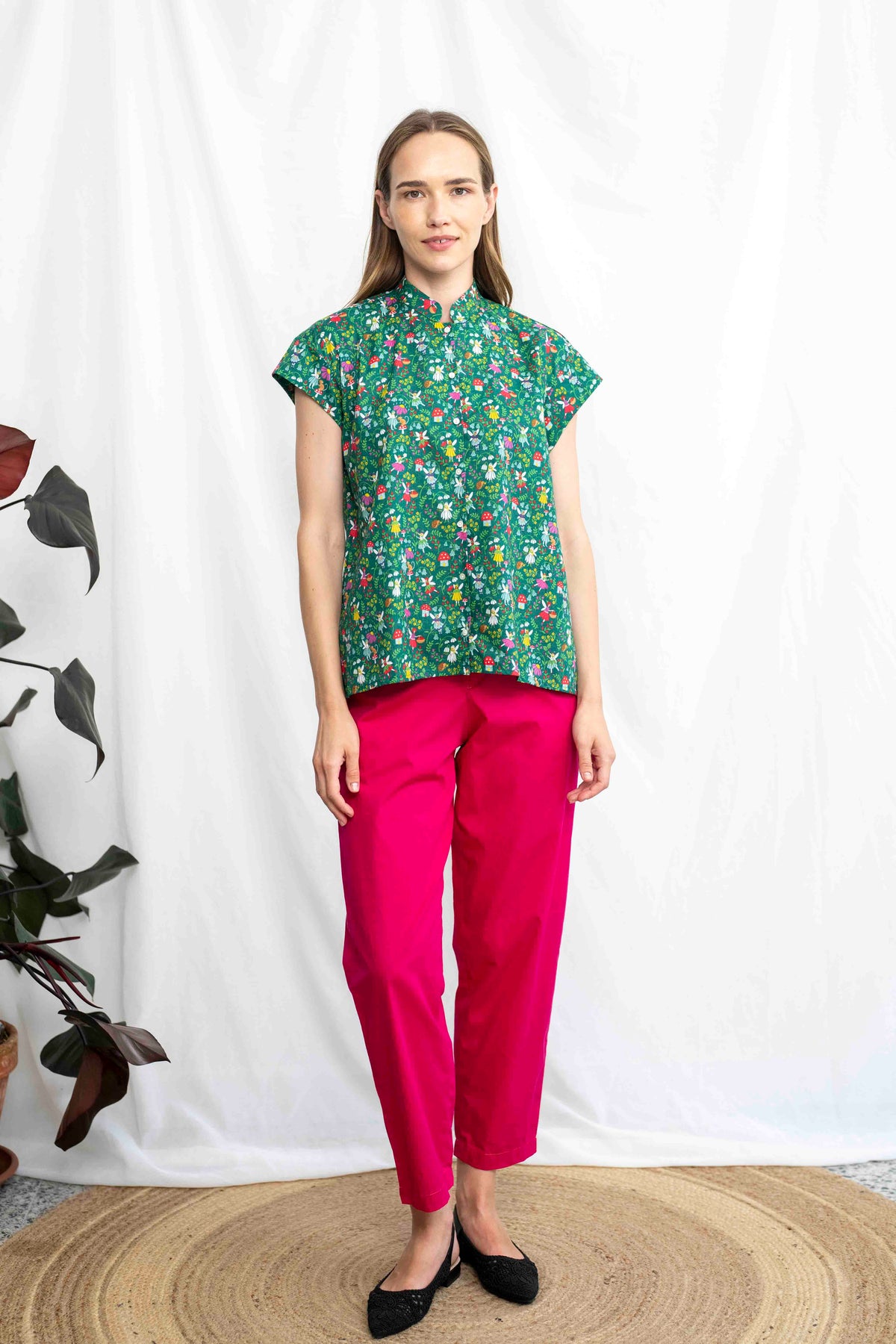 הגזרה של חולצת טוני נשארת נאמנה לקווים המוכרים והאהובים: חלק אחורי ארוך מעט מהקדמי שמעניק מראה מחמיא ומשוחרר, צווארון סיני עדין שמשווה תחכום בלי לוותר על נינוחות, ושרוולים קצרים ורפויים שמתאימים באופן מושלם לאקלים הישראלי. החולצה שומרת על איזון נהדר בין עיצוב מוקפד לנוחות יומיומית – הבחירה המושלמת למי שאוהבת להביע את הייחודיות שלה ולחבר בין סטייל לפנטזיה.