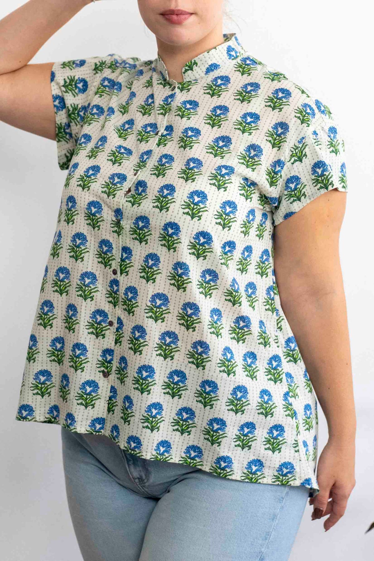 חולצת טוני היא החולצה המושלמת לקיץ הישראלי. עם עיצוב אי-סימטרי מדליק, היא מוסיפה אווריריות וסטייל לכל לוק. הצווארון הסיני העדין מעניק לה מראה מקסים, בעוד השרוולים המרוחקים מהגוף מוסיפים נוחות וקלילות. עם החלק האחורי שארוך מהקדמי, היא עושה את כל ההבדל במראה חופשי ומודרני.
