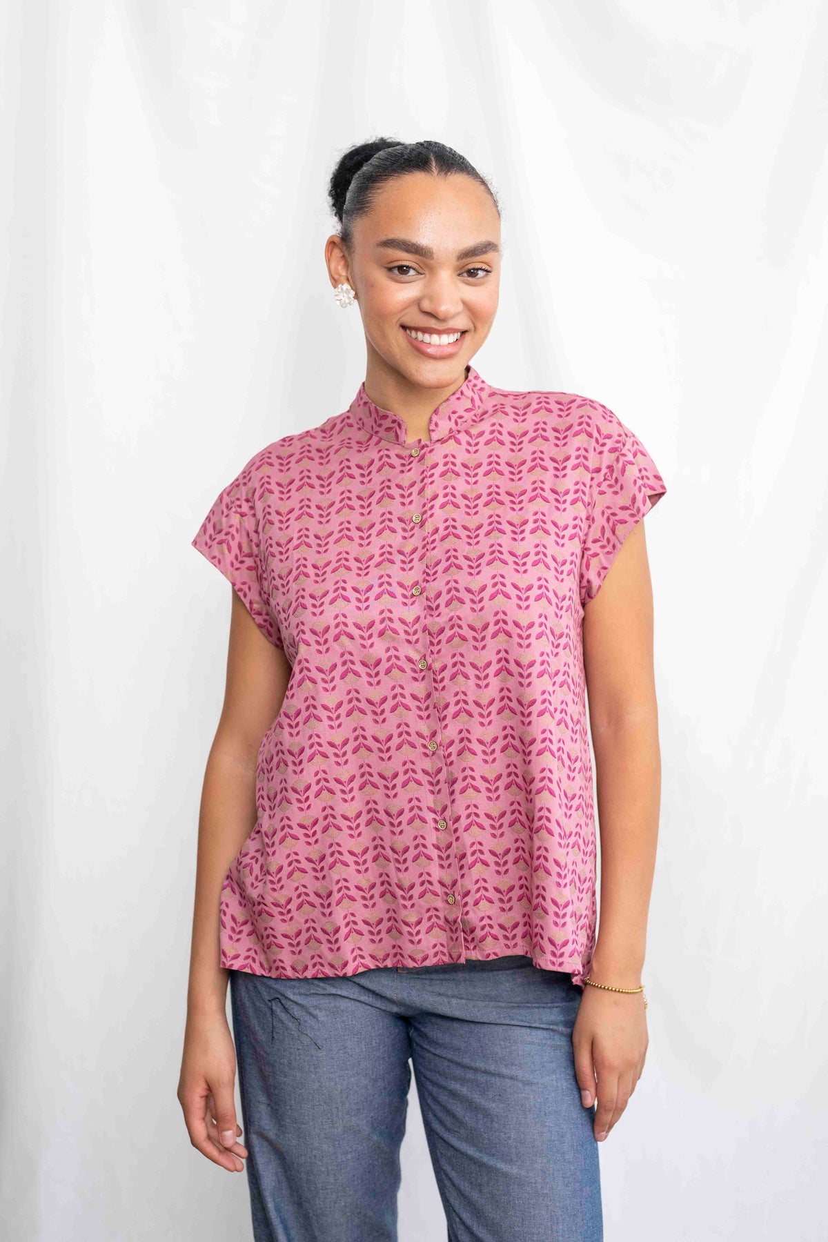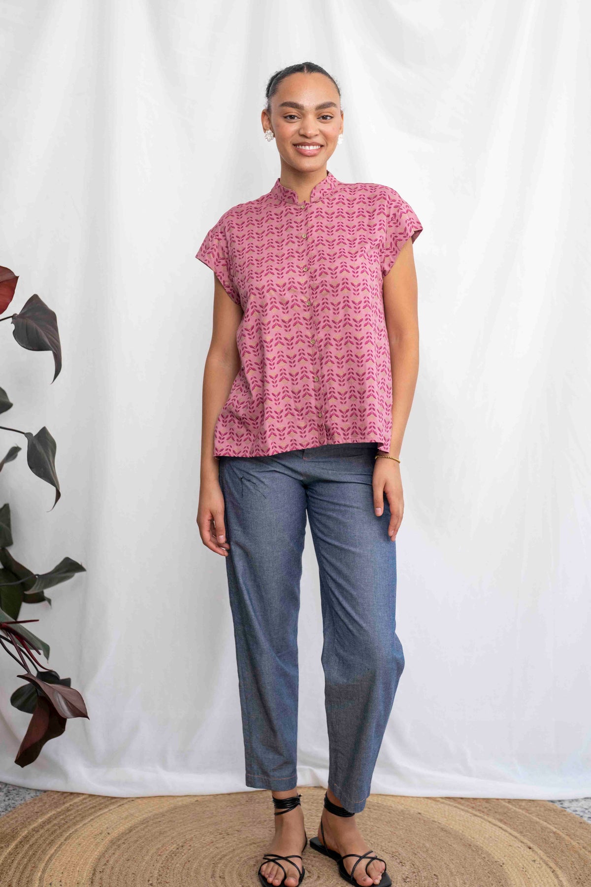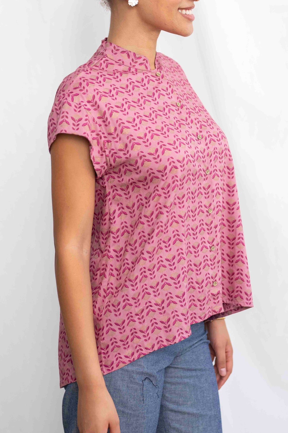 הגזרה המוכרת והאהובה של חולצת טוני נשמרת גם כאן: צווארון סיני מינימליסטי שמעניק מראה מחויט אך רגוע, כפתורים קטנים שמשתלבים בהרמוניה עם הדפס הבד, וחלק אחורי ארוך מעט מהקדמי – לנוחות, תנועה חופשית ומראה מחמיא במיוחד. זו חולצה שמושלמת למי שמחפשת לשדר רוך, טעם טוב ותחכום שקט – בחירה אידיאלית לכל רגע שבו בא לך להרגיש הכי את – בגרסה הכי עדינה שלך.