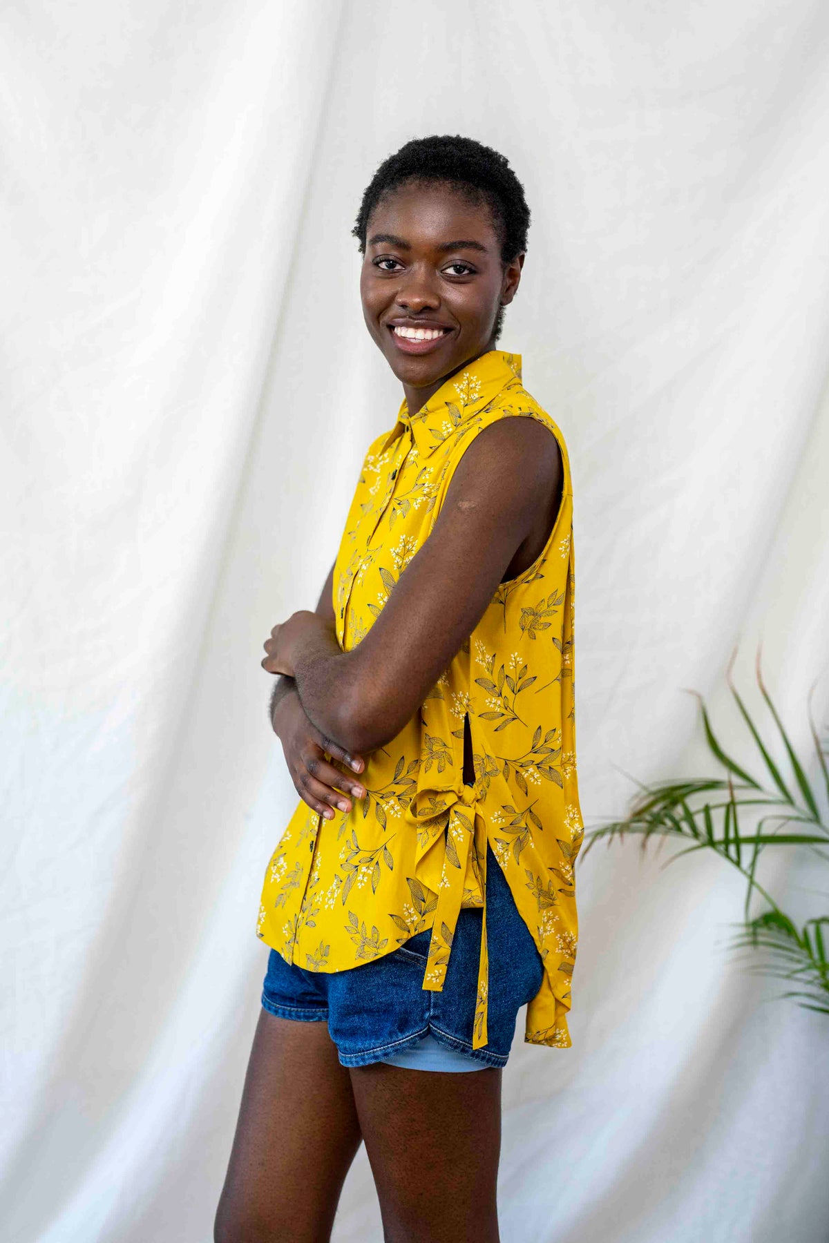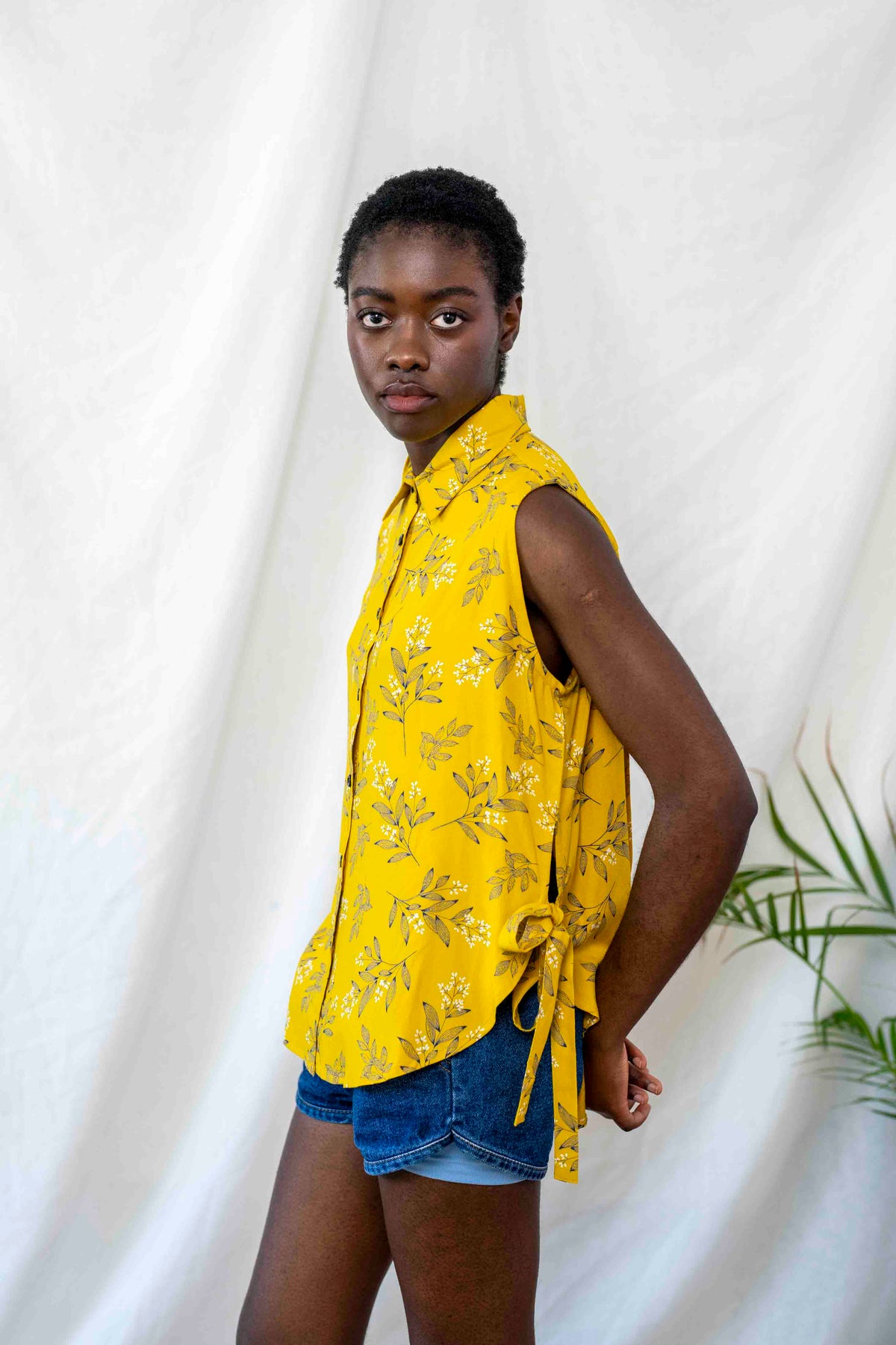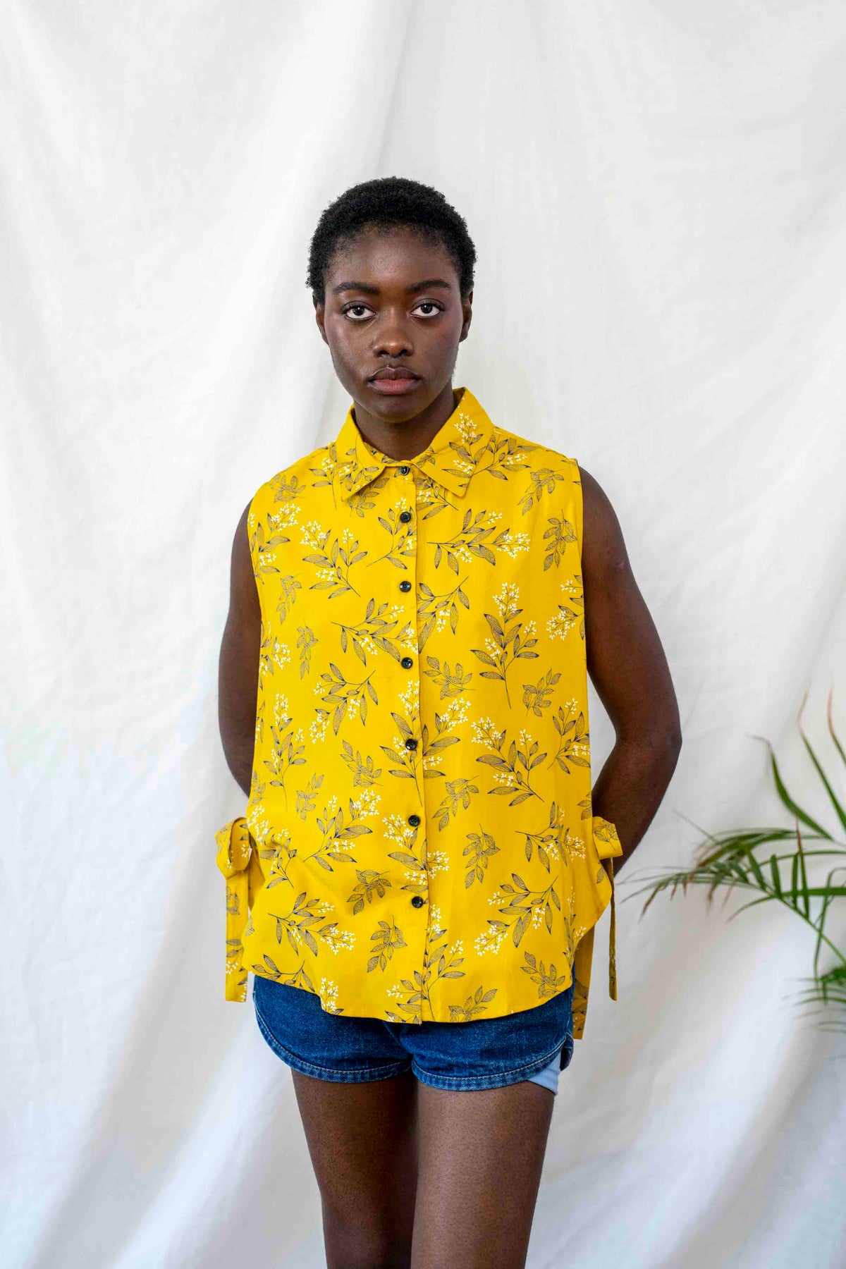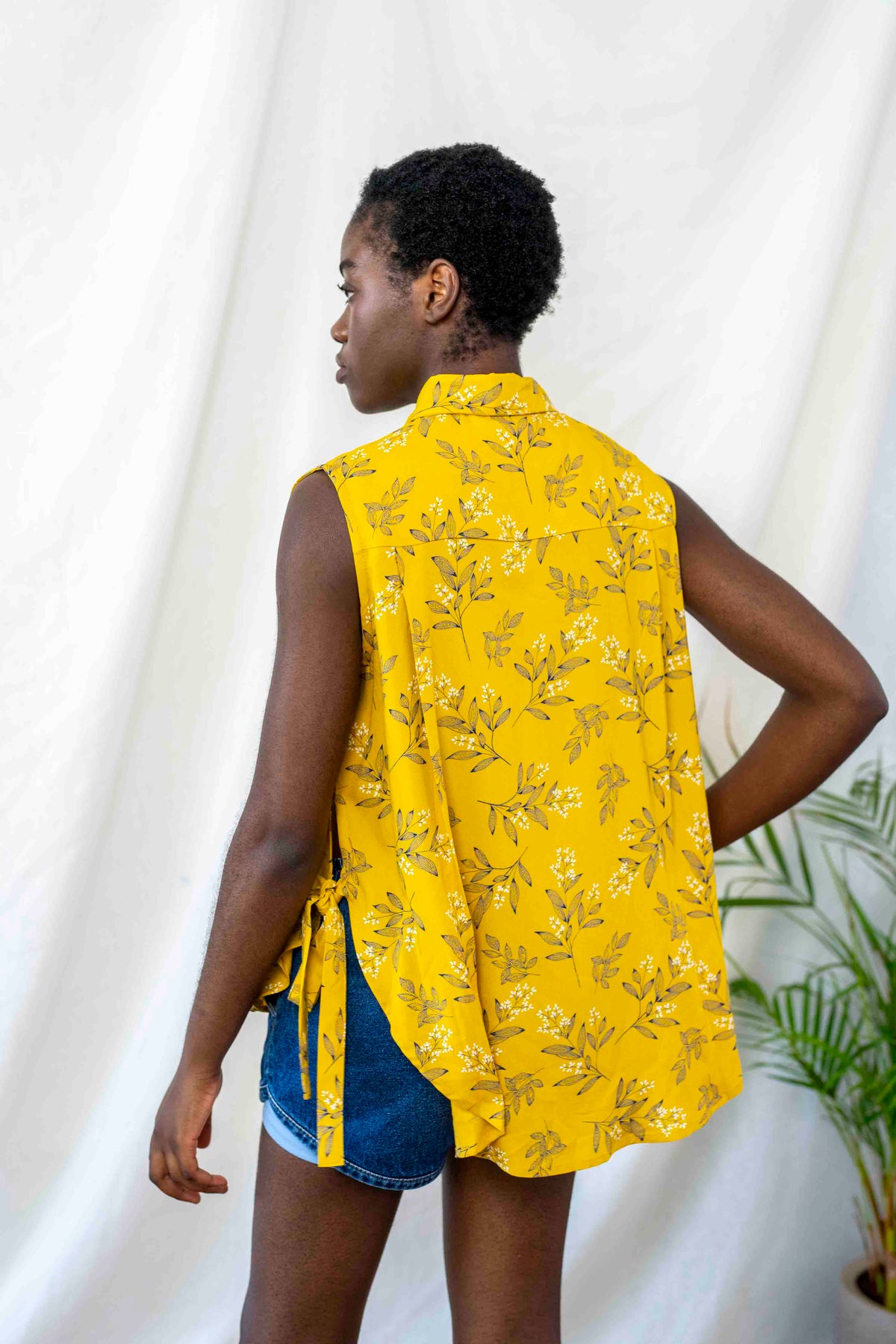 חולצת פפיון בעלת גיזרת אוברסייז משוחררת, רחוקה מהגוף, בעלת צווארון מחוייט ושסעים עמוקים בצידי הגוף, הנקשרים בסרט. החולצה עוצבה למזג האוויר הדביק הזה בדיוק, כשלא בא לך ששום דבר ייגע בך ועדיין מתחשק לך להראות מעולה ולגרוף את כל המחמאות.