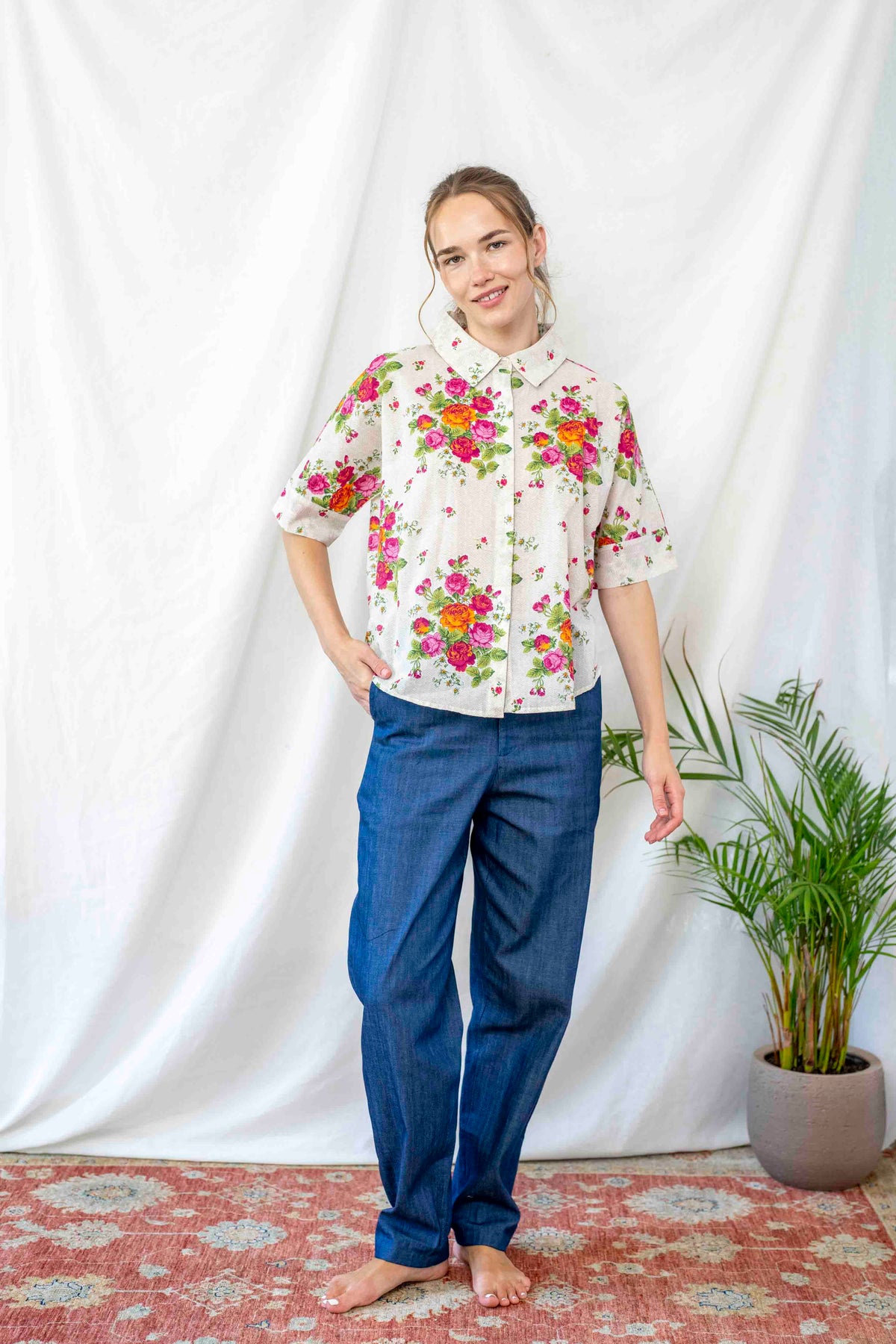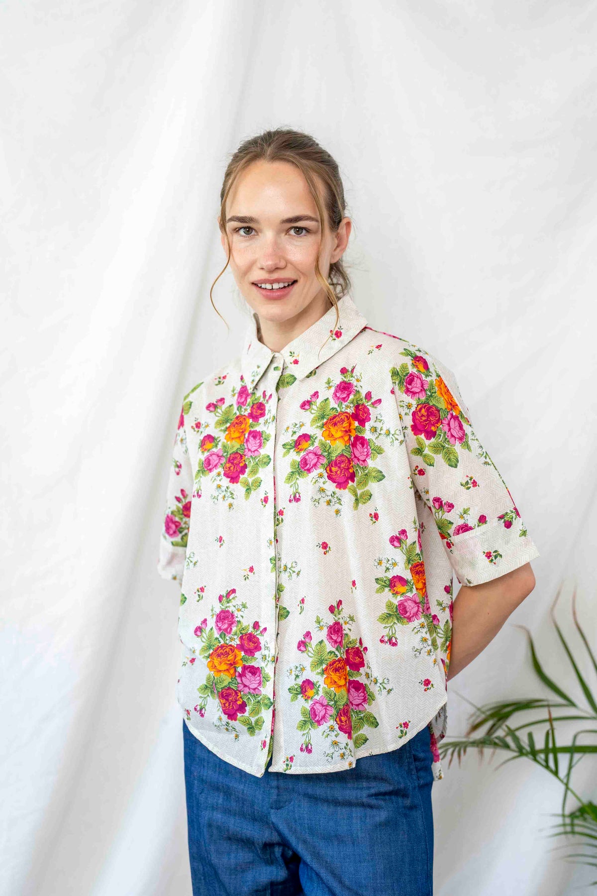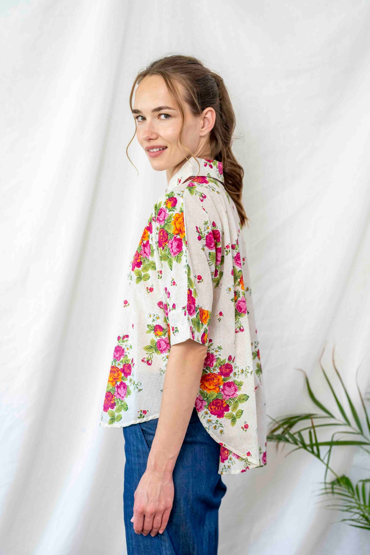 חולצת רובי החדשה, בעללת צווארון חגיגי, אורך שרוול 3/4 מושלם וגיזרת אוברסייז מחמיאה בסיום מעוגל.