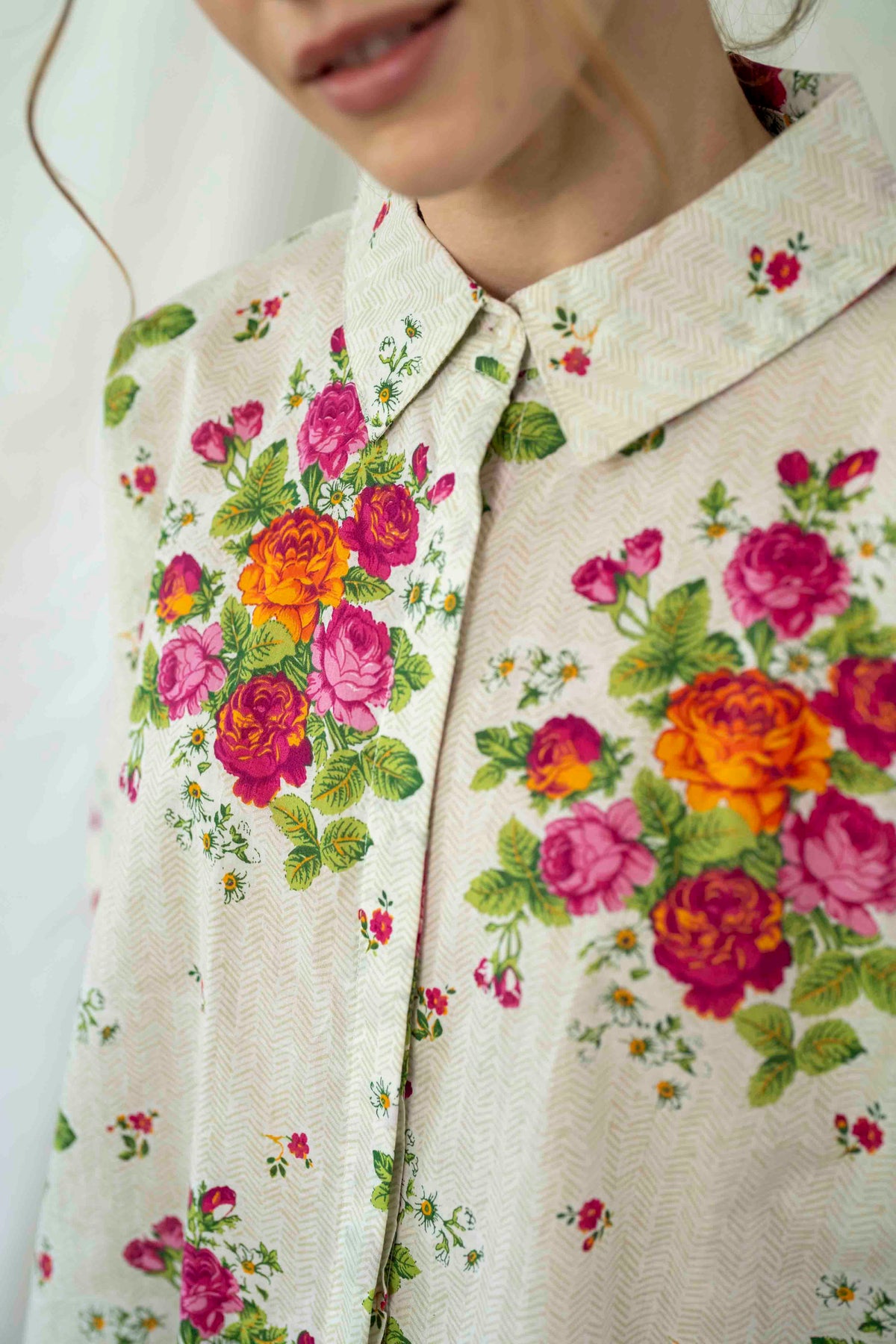 חולצת רובי לבנה עם שושנים ועיטורים גאומטריים עדינים היא לגמריי מאסט הב וחגיגית במיוחד.