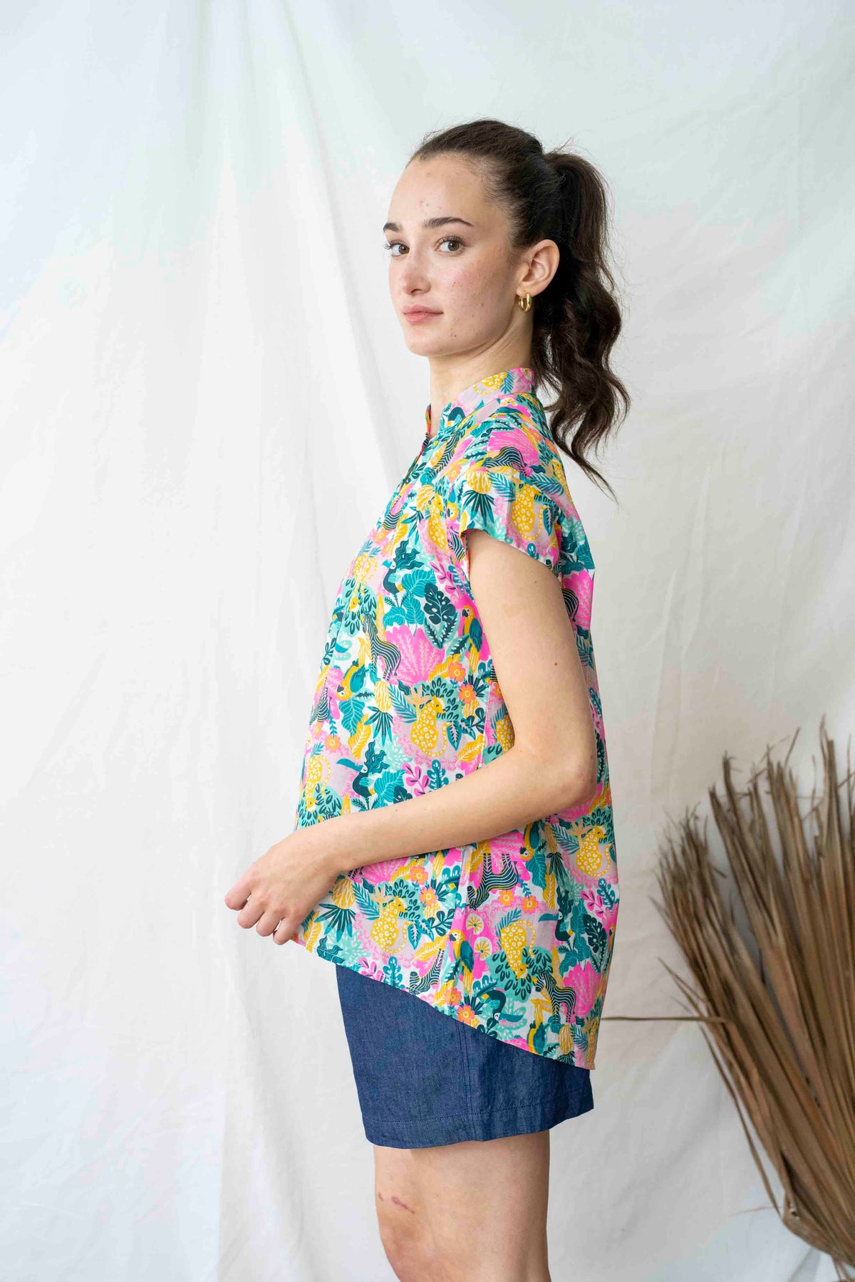 חולצת טוני היא החולצה המושלמת לקיץ הישראלי. עם עיצוב אי-סימטרי מדליק, היא מוסיפה אווריריות וסטייל לכל לוק. הצווארון הסיני העדין מעניק לה מראה מקסים, בעוד השרוולים המרוחקים מהגוף מוסיפים נוחות וקלילות. עם החלק האחורי שארוך מהקדמי, היא עושה את כל ההבדל במראה חופשי ומודרני.
