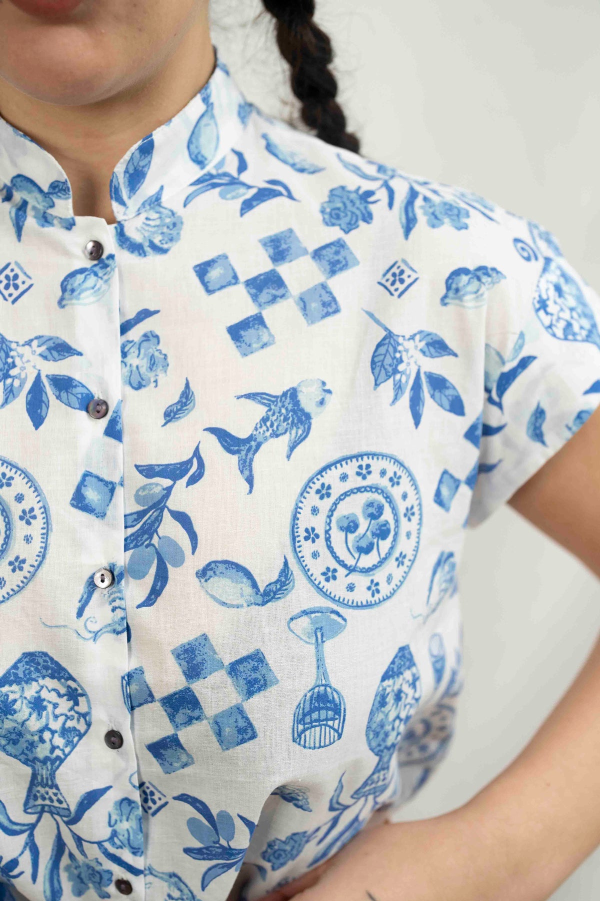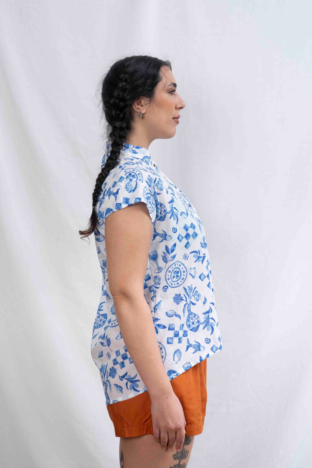 הגזרה של חולצת טוני נשארת נאמנה לקווים המוכרים והאהובים: חלק אחורי ארוך מעט מהקדמי שמעניק מראה מחמיא ומשוחרר, צווארון סיני עדין שמשווה תחכום בלי לוותר על נינוחות, ושרוולים קצרים ורפויים שמתאימים באופן מושלם לאקלים הישראלי. החולצה שומרת על איזון נהדר בין עיצוב מוקפד לנוחות יומיומית – הבחירה המושלמת למי שאוהבת להביע את הייחודיות שלה ולחבר בין סטייל לפנטזיה.