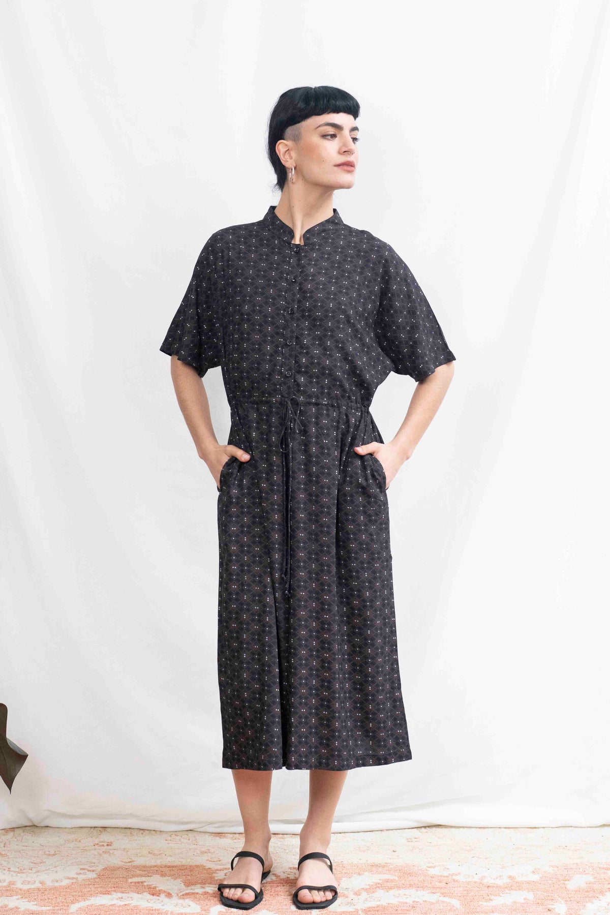 האוברול הקלאסי שמביא איתו נינוחות ויופי. לאוברול צווארון סיני עדין וכפתורים בחזה המעניקים לו מראה מודרני ואסתטי. עם שרוך מובנה במותן המכוון בצורה מושלמת, זוג כיסים צידיים פרקטיים ושרוולים רחבים, הוא לא רק נוח, אלא גם מחמיא במיוחד והמידות הנדיבות שלו מבטיחות שיתאים בצורה מושלמת לכל גוף.