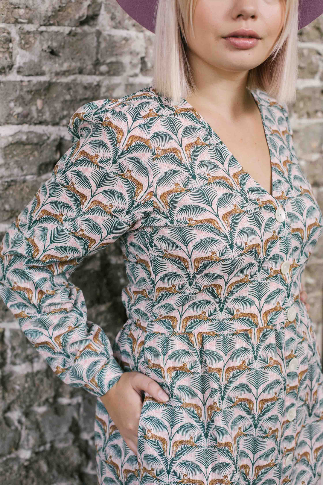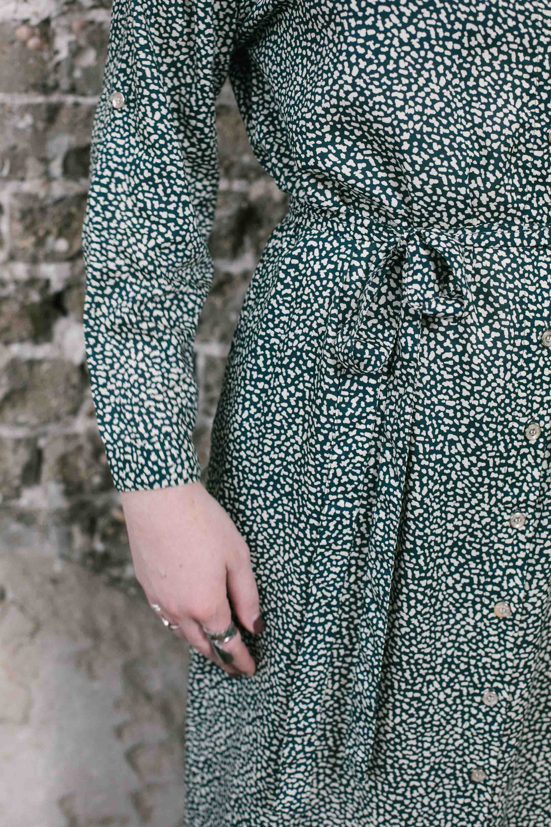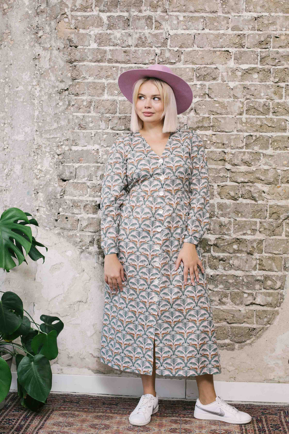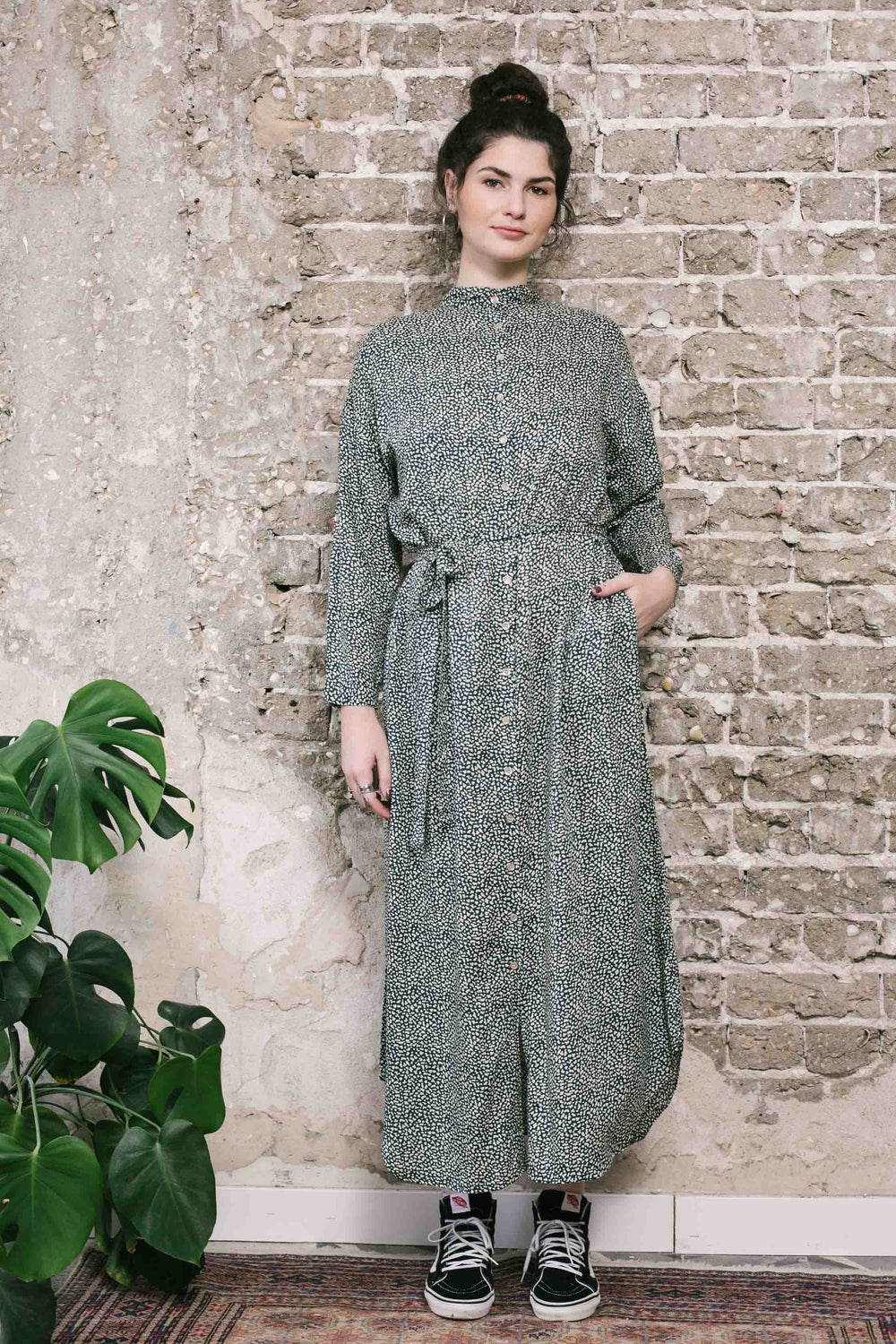 שמלת מקסי אוברסייז חורף ירוק לבן חייתי