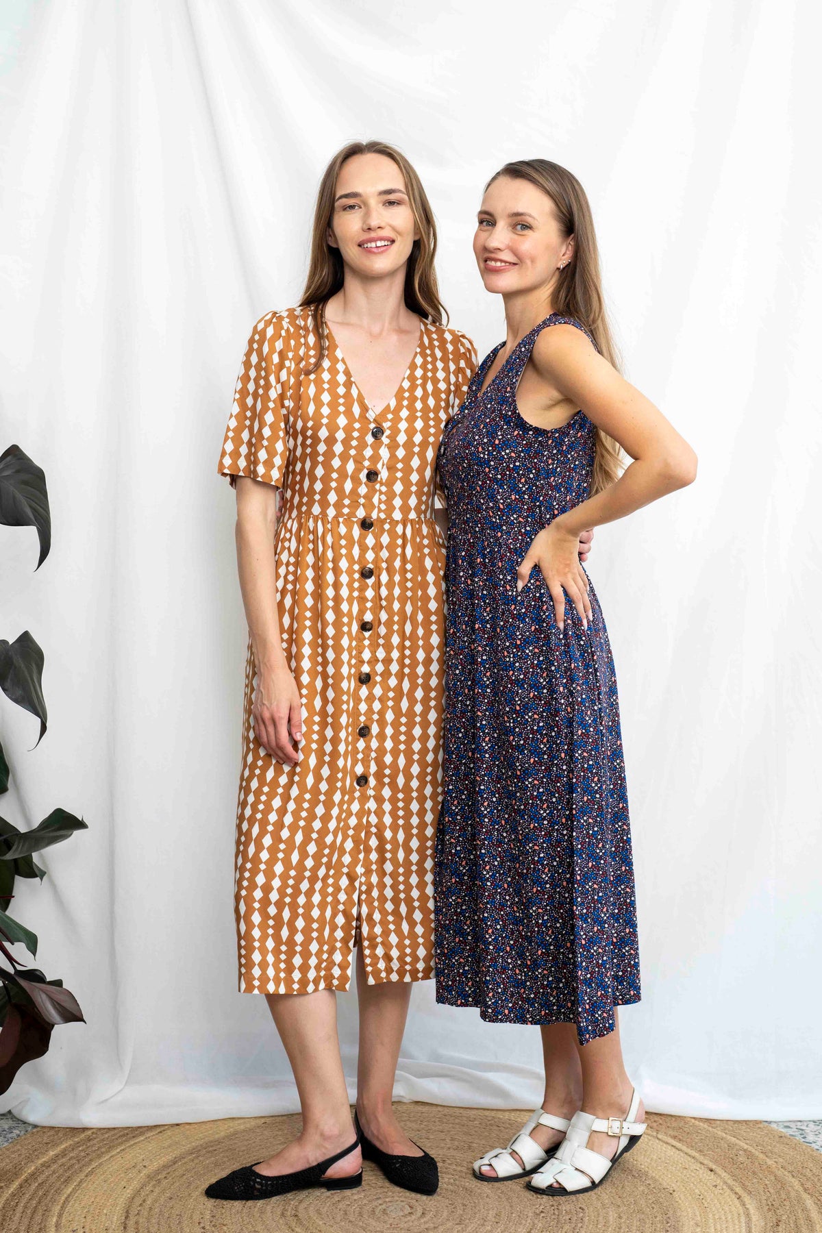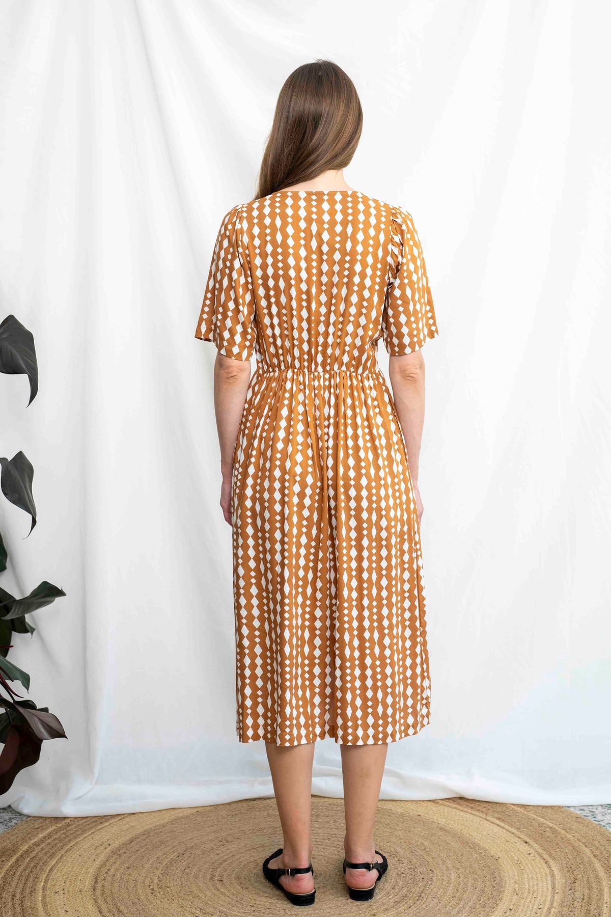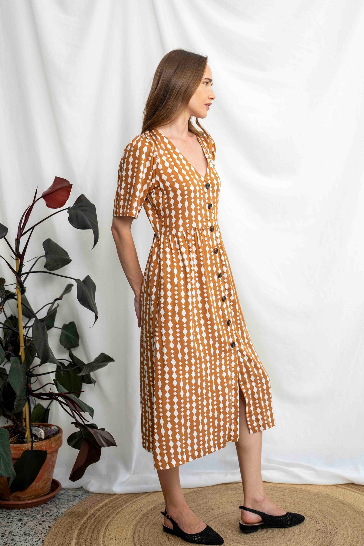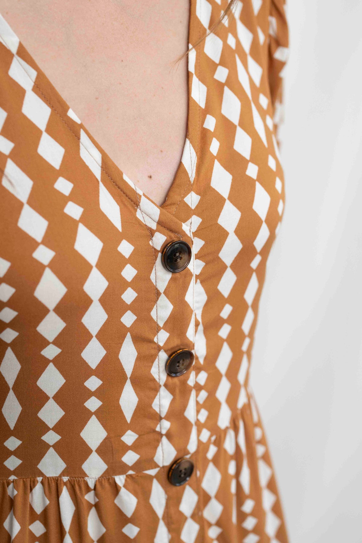 שמלת יולי שרוול מדברית מביאה איתה את כל החום, הרוך והעומק של גווני המדבר: הדפס גאומטרי מדויק בגווני חום קפה ולבן יוצר מראה טבעי, שקט ומעודכן. הבד רך ונעים שמתאים בדיוק לאקלים המקומי. הצבעוניות המאופקת משתלבת בקלות במלתחה שלך – ועדיין מצליחה לבלוט ביופייה הנינוח.