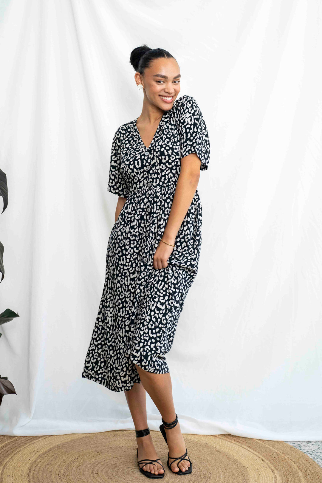 שמלת יולי שרוול מנומר שחור לבן