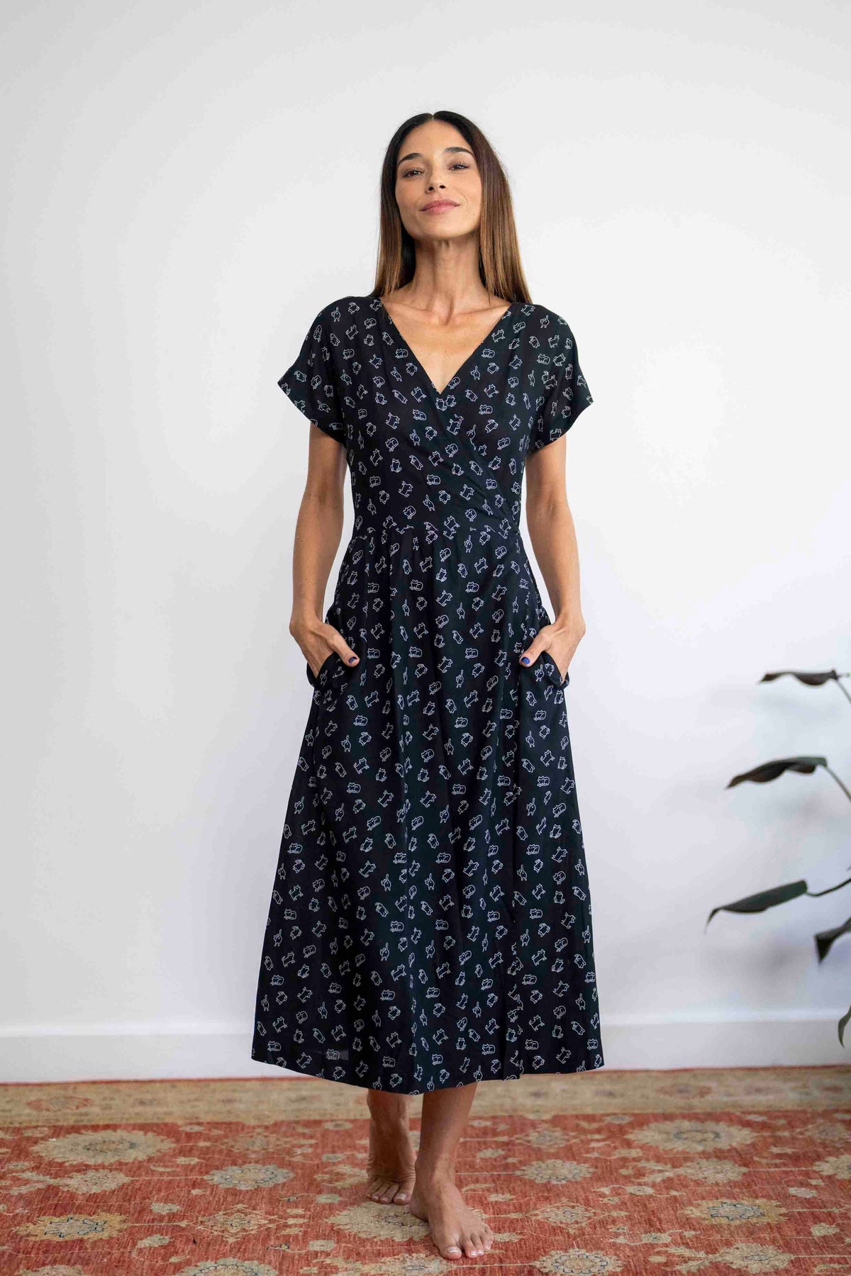 שמלת גיישה באורך מידי, מעוצבת בהשראה יפנית, בגזרת מעטפת סופר מחמיאה ומשוחררת! בעלת חגורה עוטפת, שרוולי חצי מחמיאים, וכמובן, זוג כיסים צדיים. שמלה נשית ואלגנטית, מלאת נוכחות, מושלמת ללוק יומיומי ורומנטי או ללוק ערב סטייליסטי שיגרוף מחמאות.