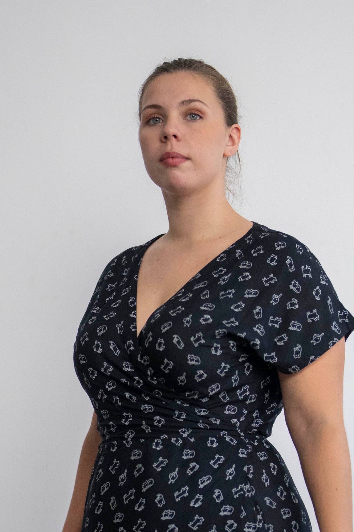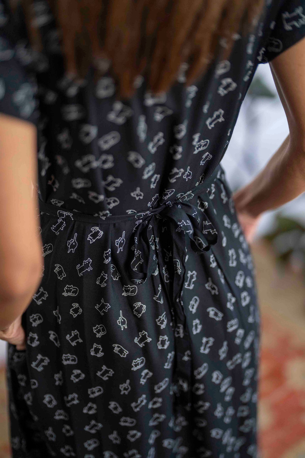 שמלת גיישה הלו קיטי מעוטרת בחתולים קטנים על רקע שחור, הכי שיקית שיש!