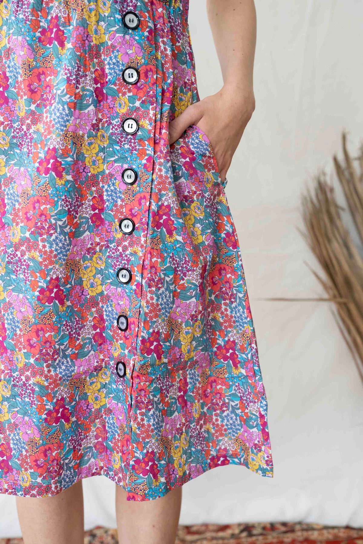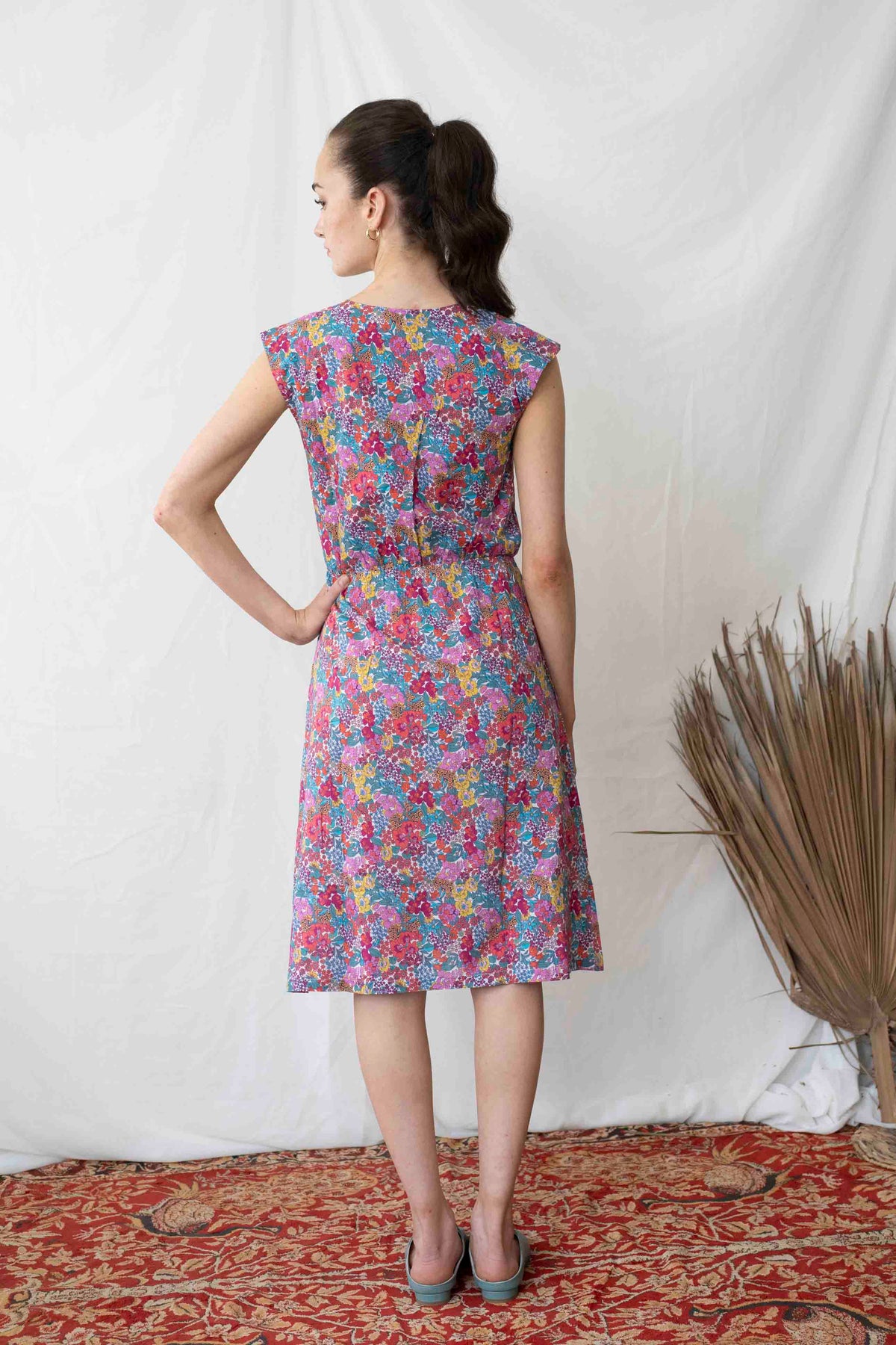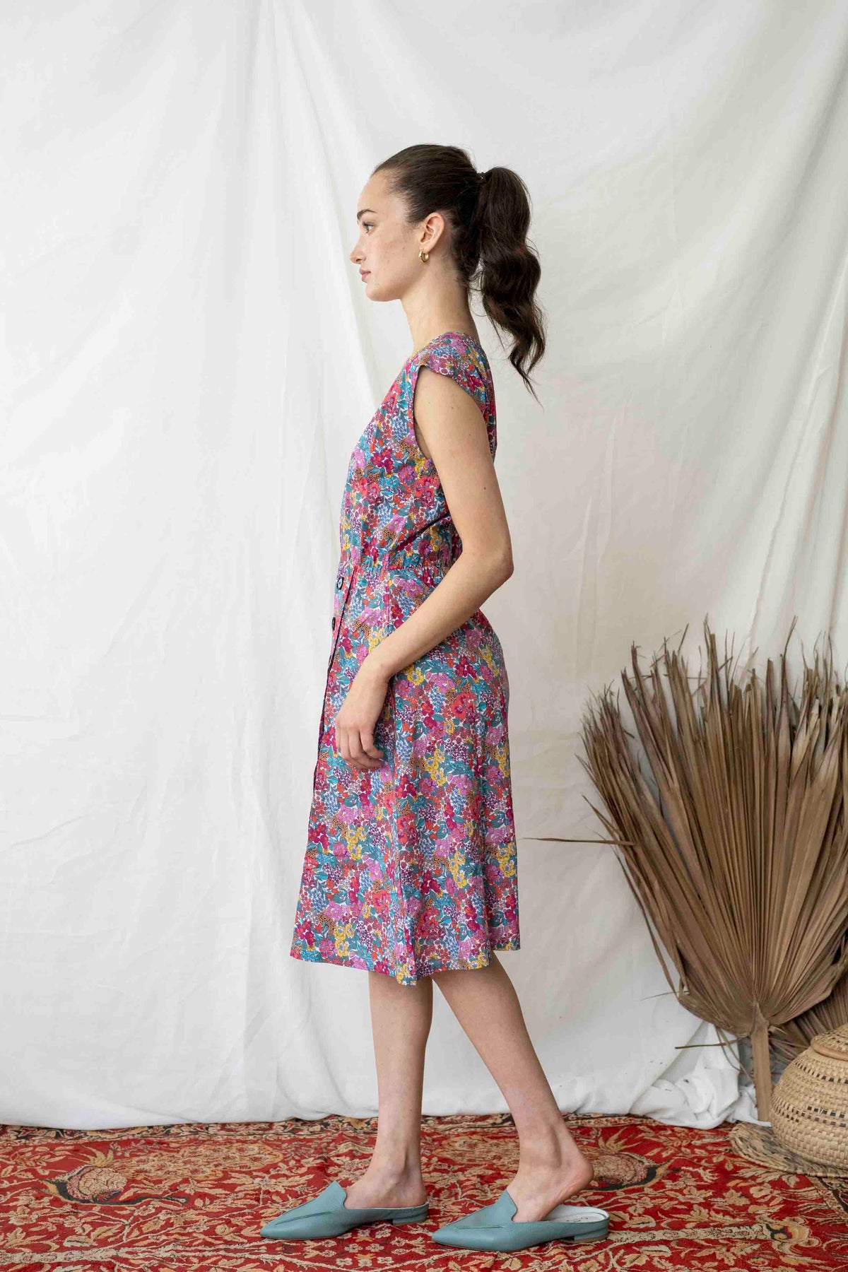 שדרגי את היומיום שלך עם שמלת אווה מתוקה כצוף, המעוצבת במוטיבים פרחוניים קטנים וצבעוניים.