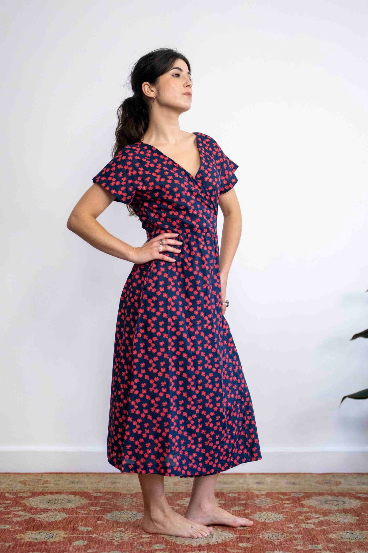 שמלת גיישה באורך מידי, מעוצבת בהשראה יפנית, בגזרת מעטפת סופר מחמיאה ומשוחררת! בעלת חגורה עוטפת, שרוולי חצי מחמיאים, וכמובן, זוג כיסים צדיים. שמלה נשית ואלגנטית, מלאת נוכחות, מושלמת ללוק יומיומי ורומנטי או ללוק ערב סטייליסטי שיגרוף מחמאות.