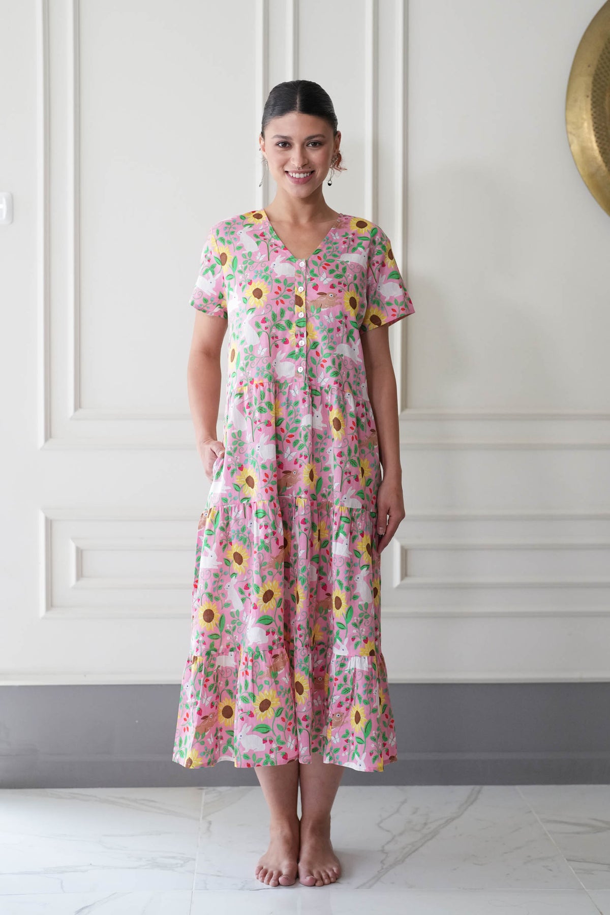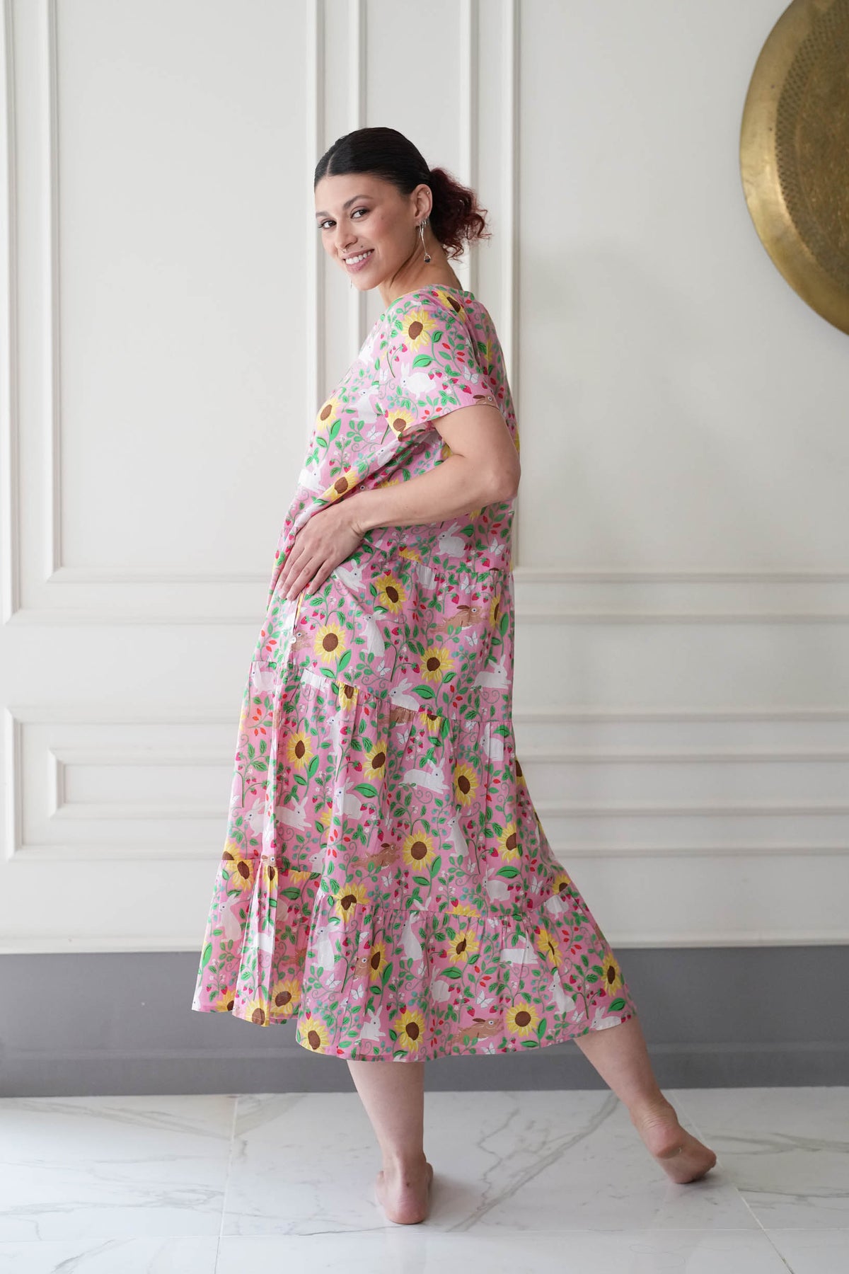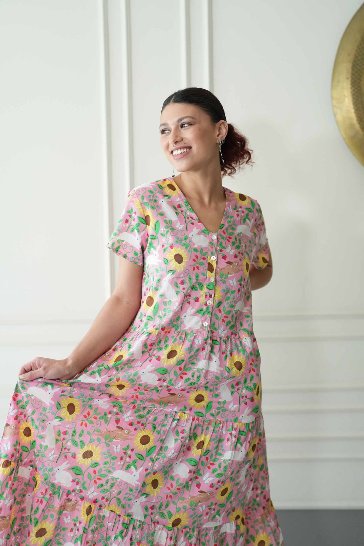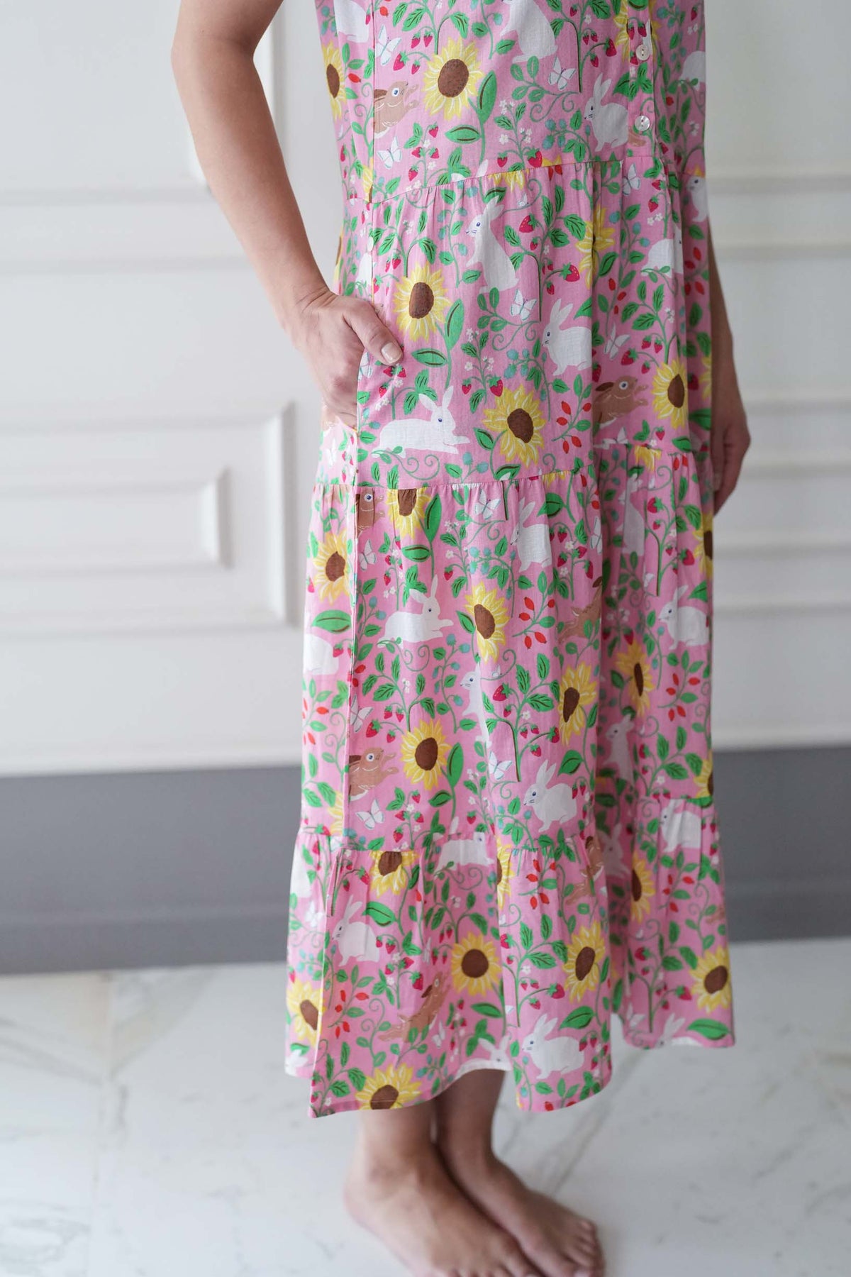 שמלת קומות הכי מרגשת שיש, מעוטרת בפרחים ובארנבים מתוקים במיוחד.