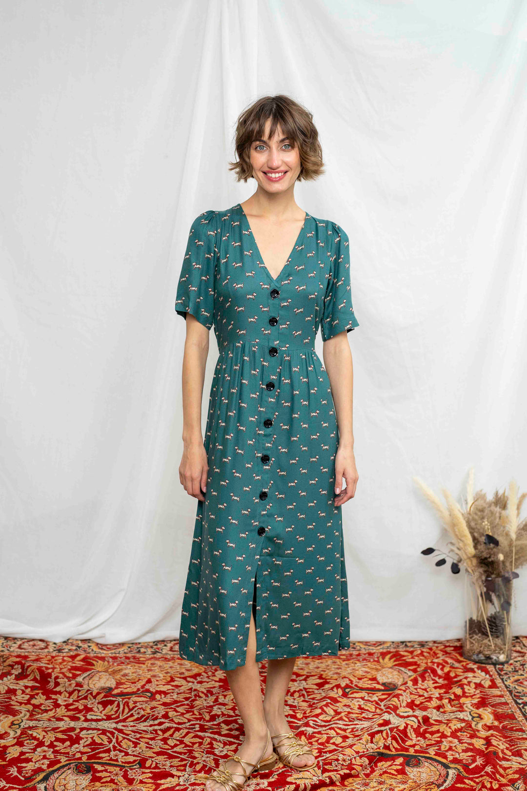 שמלת יולי שרוול כלבלבים בטורקיז