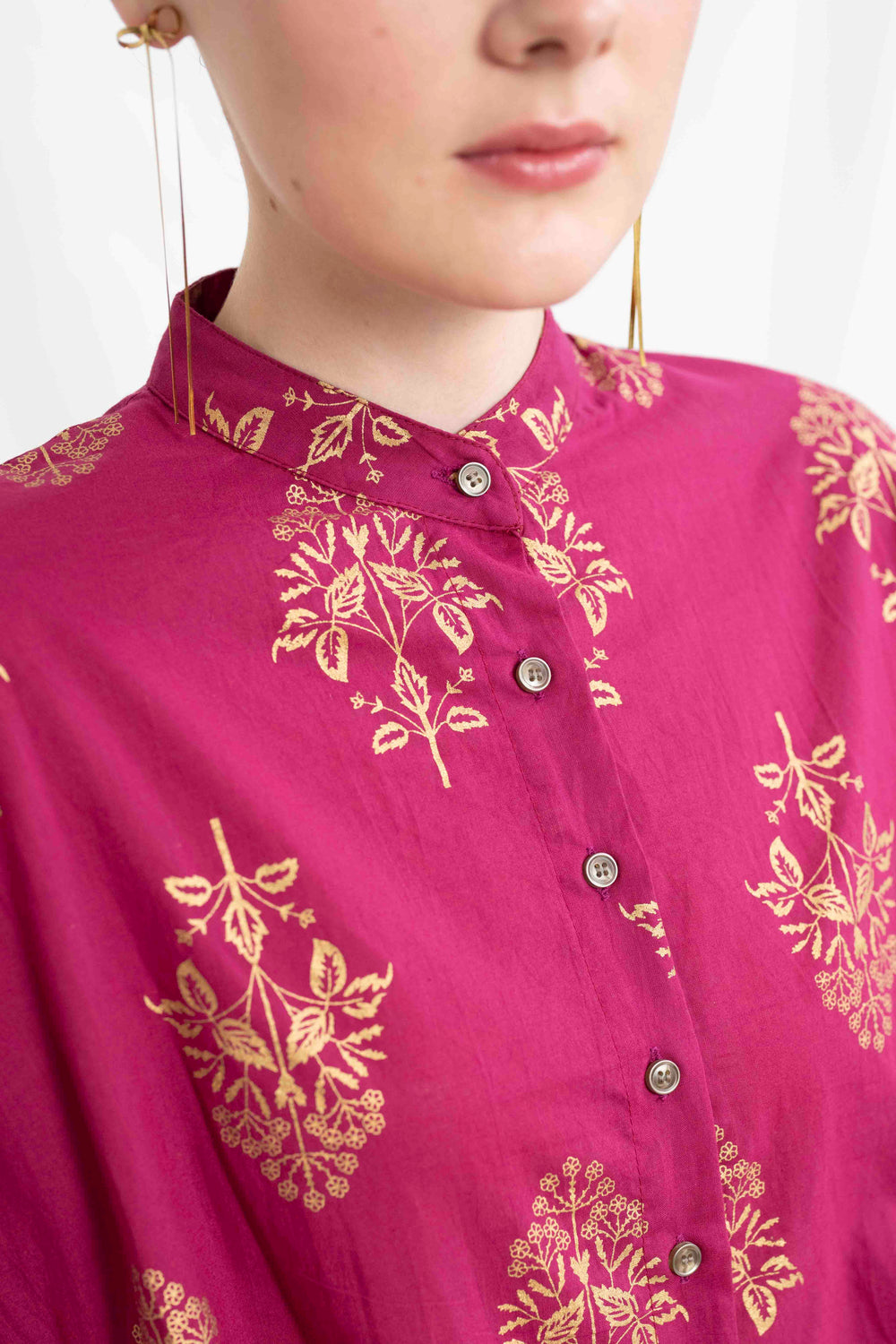 טוניקת מיני אוברסייז פרחים כתומים זהב