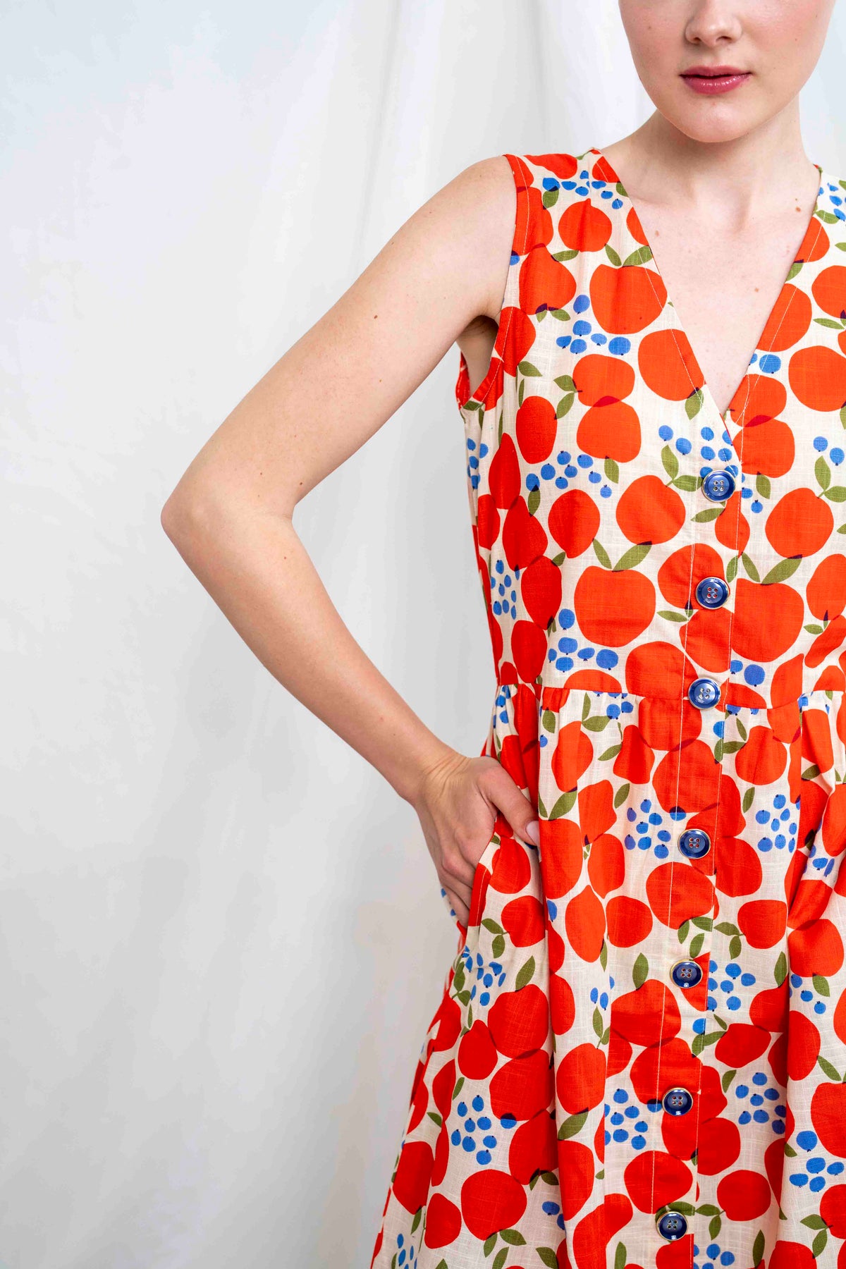 מהמם בכל אירוע. השמלה באורך מידי, ללא שרוולים ועם מפתח וי מושלם. הכפתורים הדקורטיביים לכל אורך השמלה מעניקים ביטחון וסטייל, ויש לה זוג הכיסים הצידיים מוסיפים פרקטיות. הגומי בגב מאפשר נוחות מרבית ומדגיש את המותן בצורה מחמיאה.