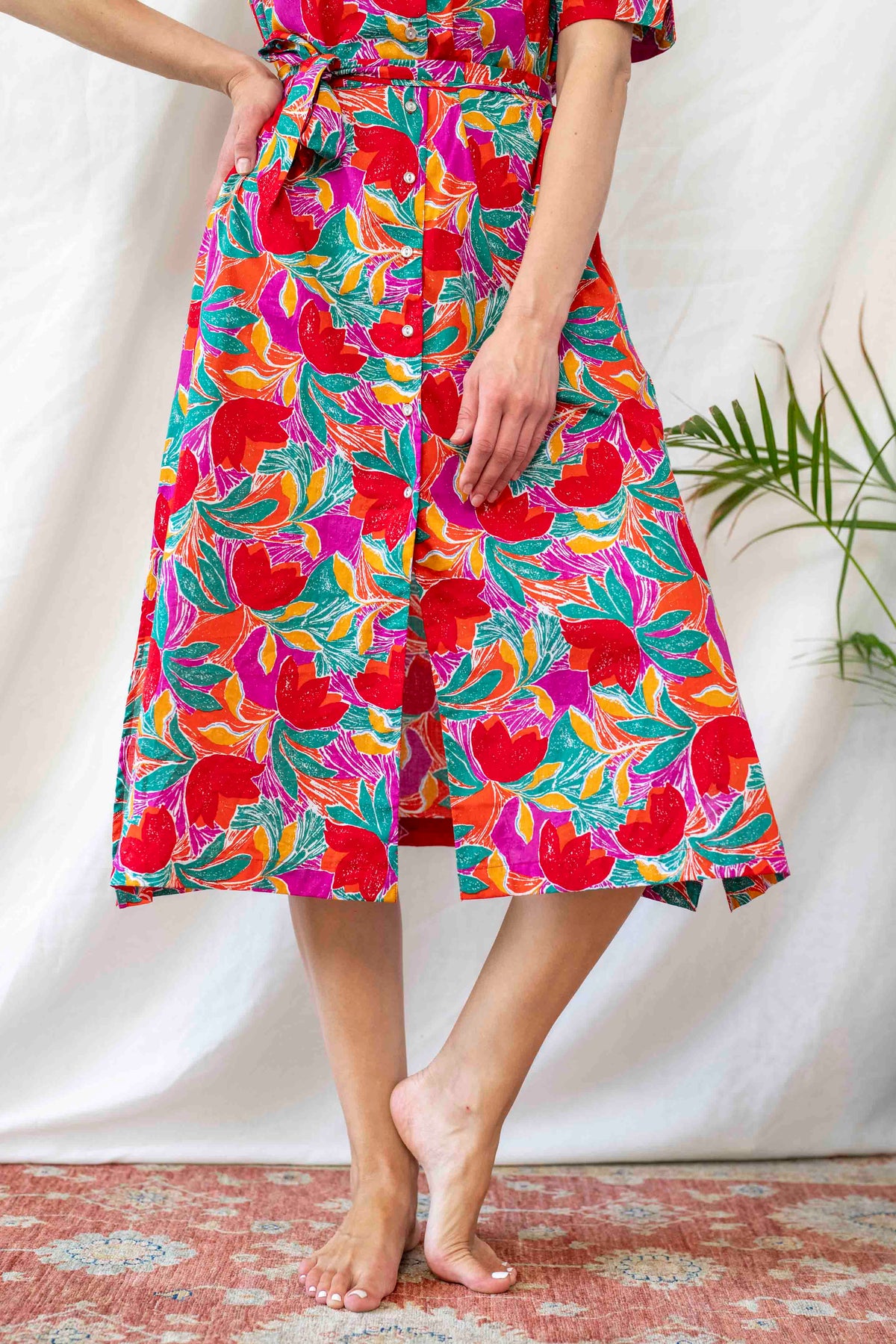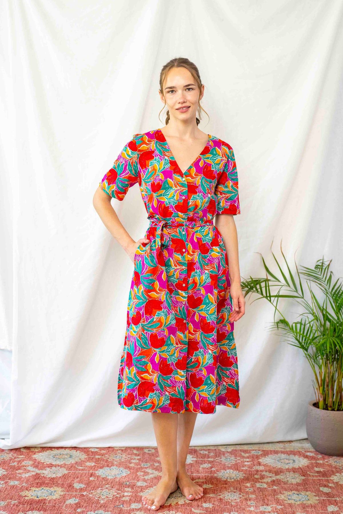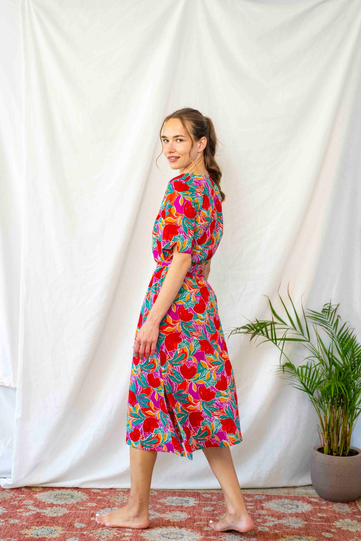 שמלת מיכאלה משובבת לב כשמה כן היא. הדפס פרחוני מושלם עם רטרו שיק.