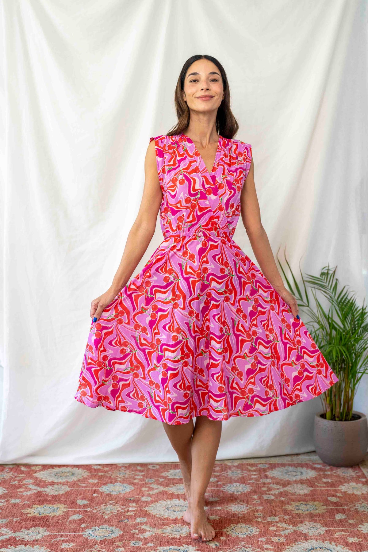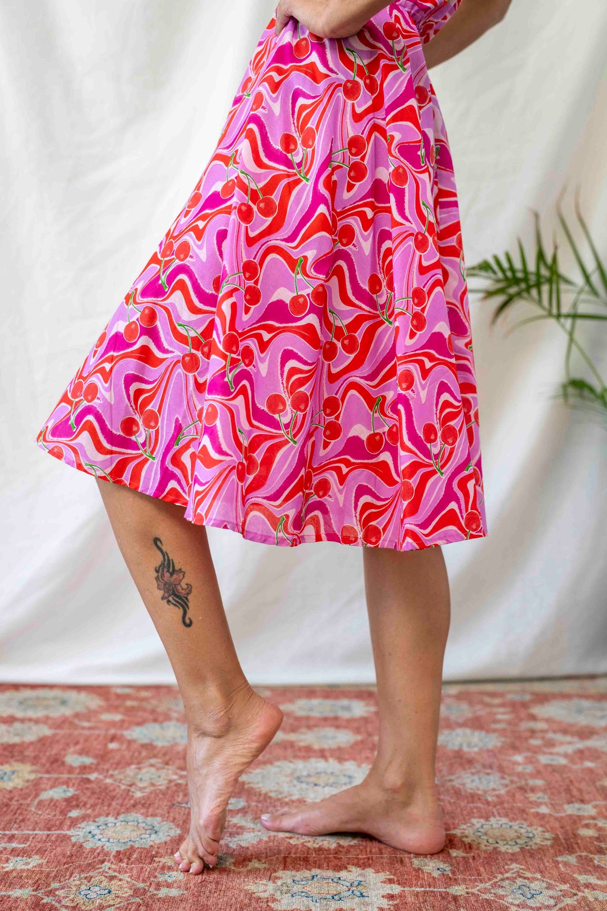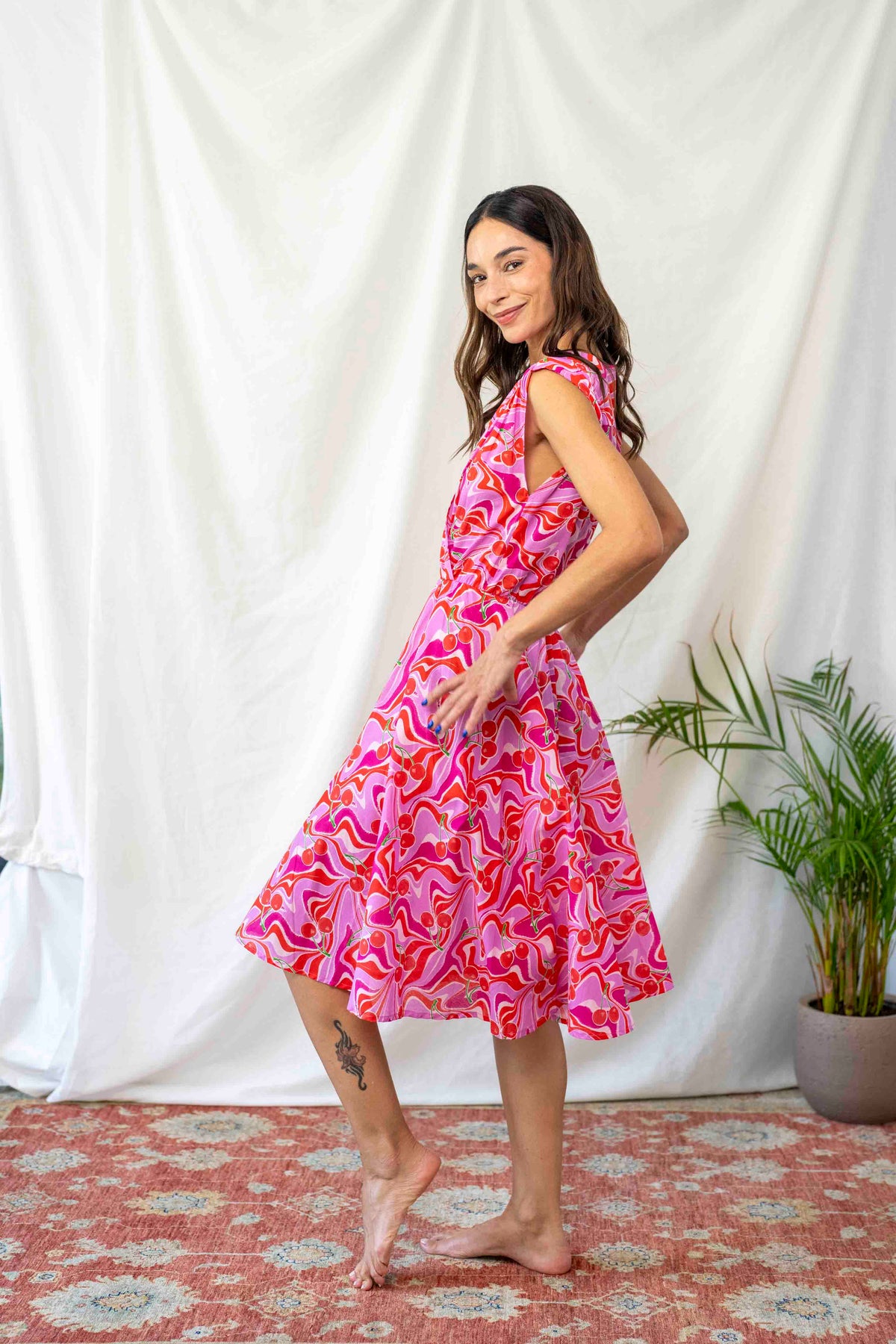 שמלת פיפטיז צ׳רי פארטי מלאת שיק רטרו וינטג׳י אדג׳י.