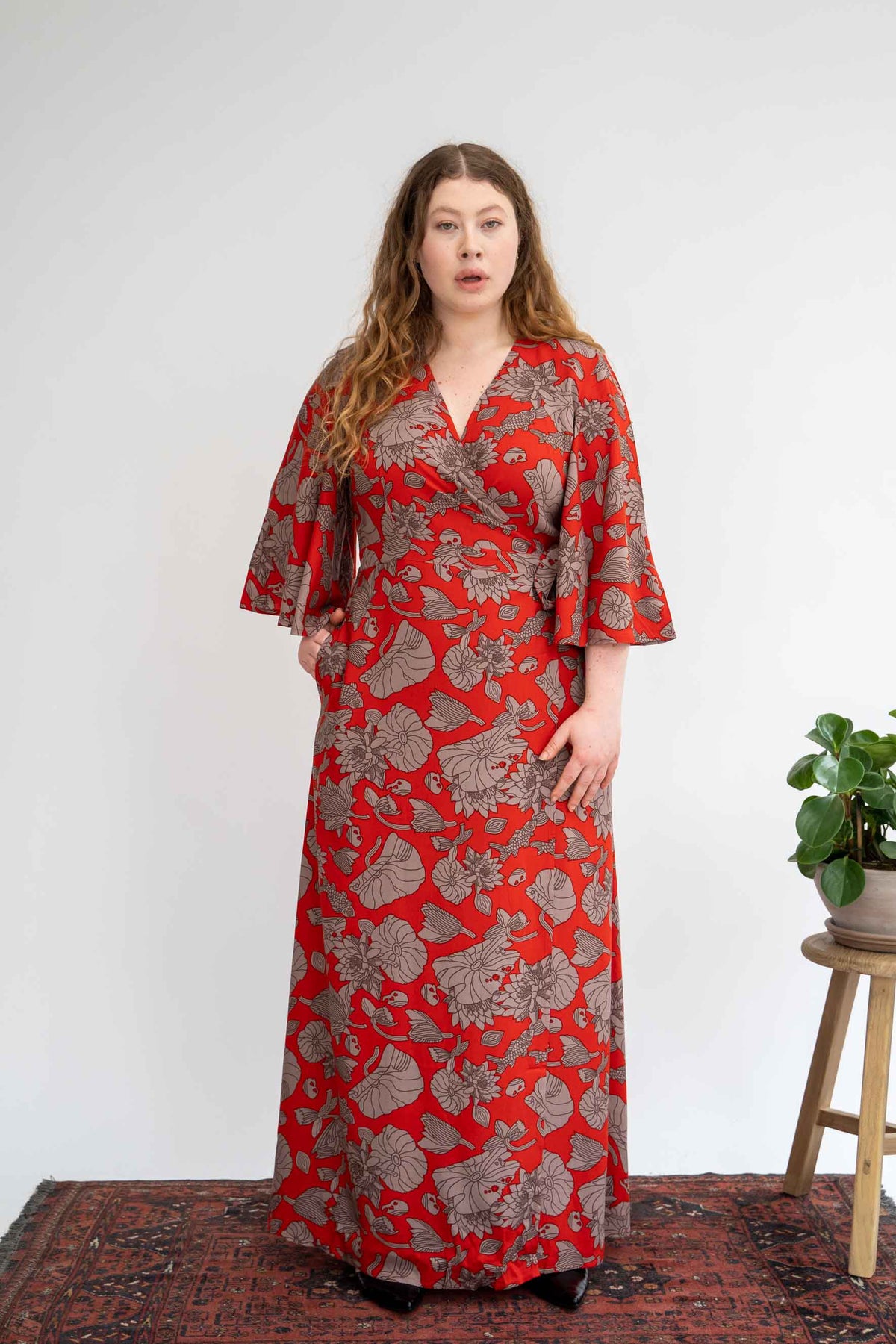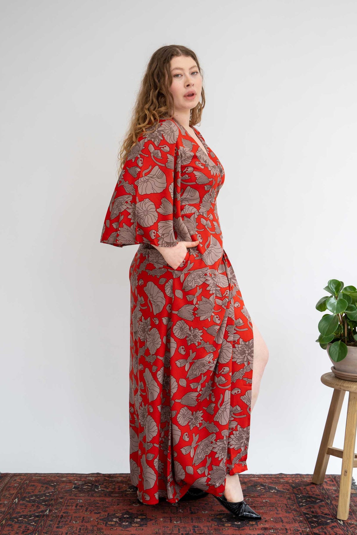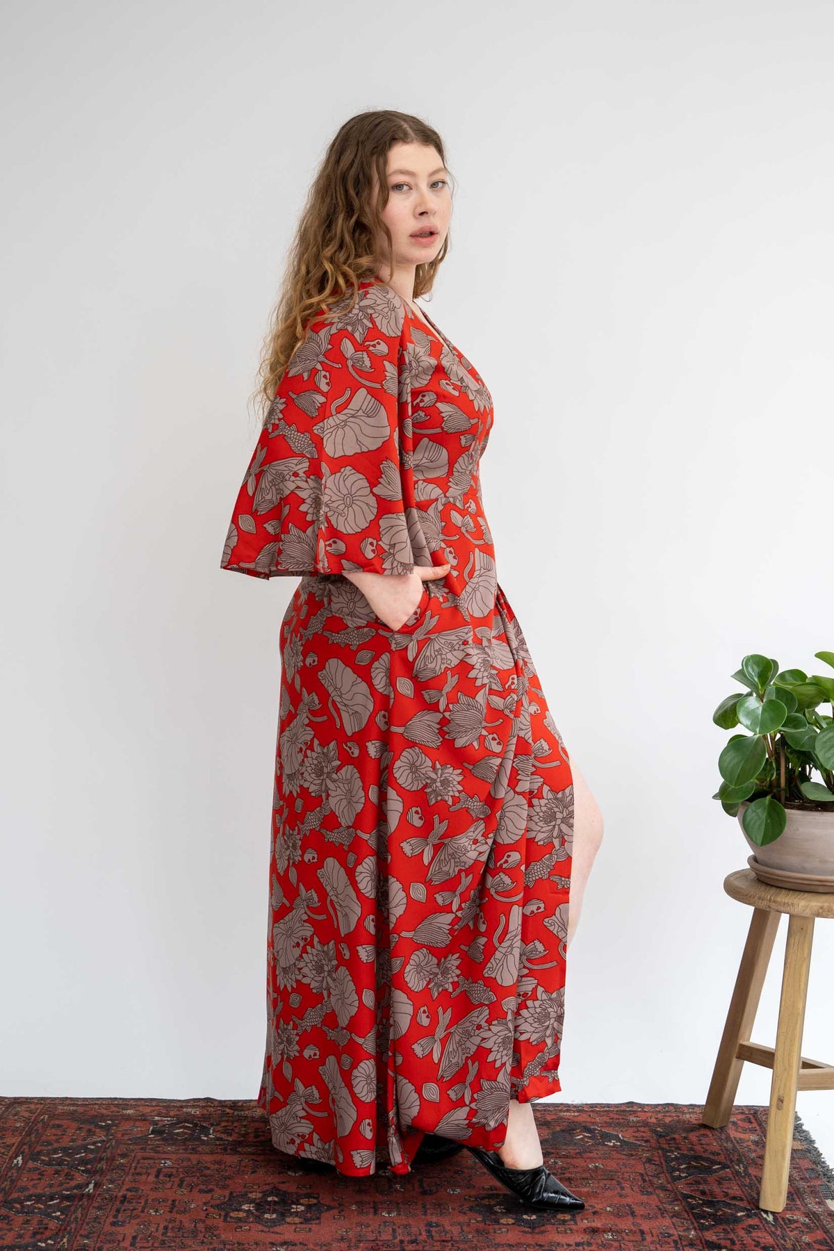קימונו מקסי טיול ליפן היא פצצת צבע מדהימה שאין לפספס עם מוטיבים מעולם המים. שמלה לאירוע וליום חול כאחד. הדגם בהשראת הקימונו היפני, שמלה סופר מרשימה בגיזרת מעטפת, בעלת שרוולי פעמון מרשימים וכמובן (איך לא?!) כיסים! שמלה צנועה ונשית בו זמנית, ארוכה ומלאת נוכחות, תראה מושלם עם עקב או עם סניקרס ותקצור את כל המחמאות.