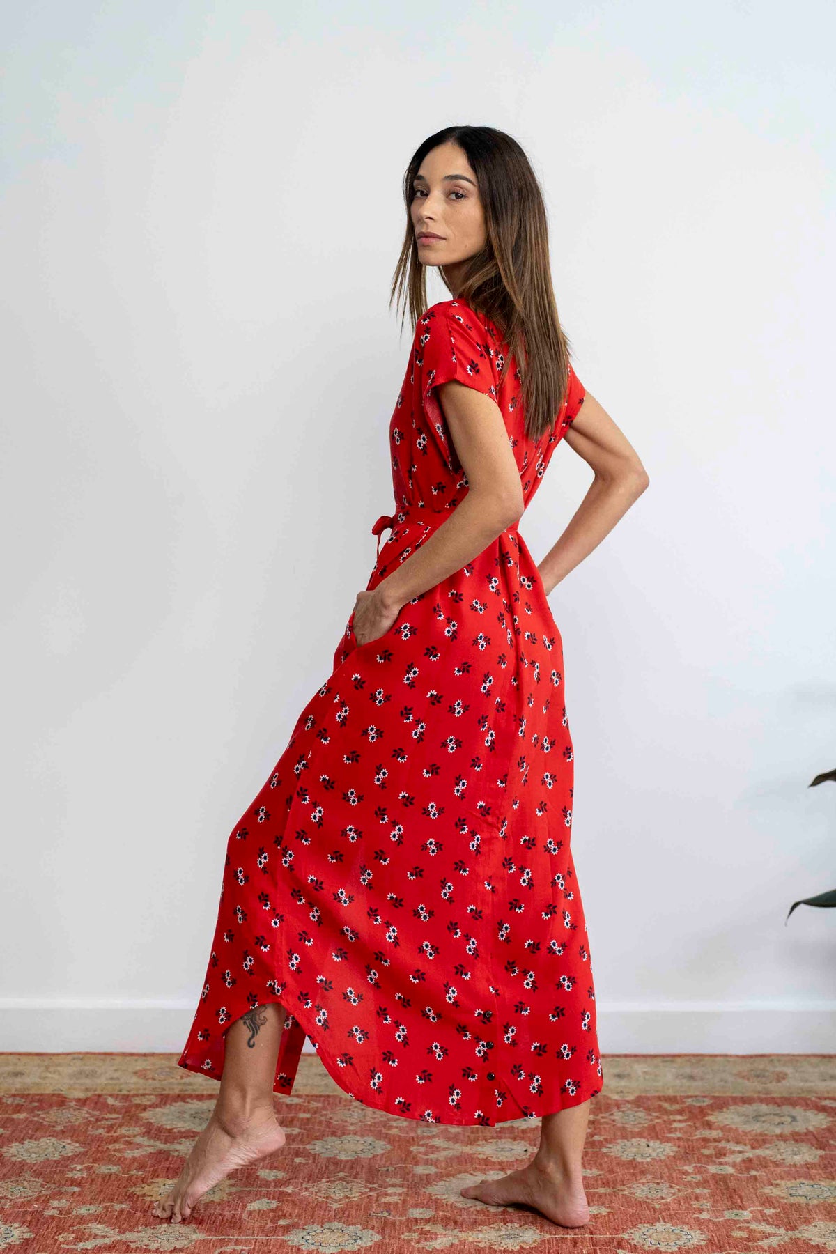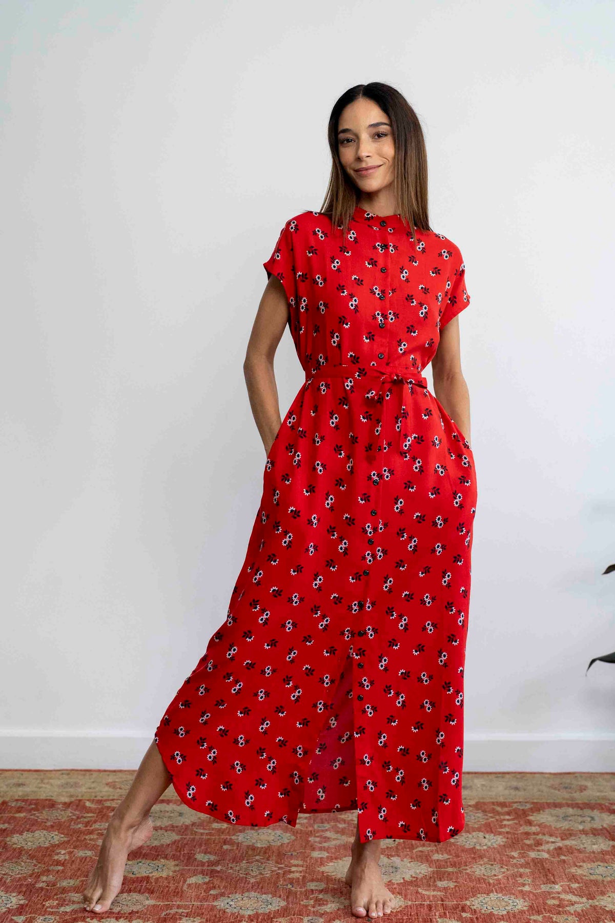 שמלה אדומה, שמלה עם נוכחות, שמלה לא מתנצלת, שבאה לתפוס מקום ולקבל תשומת לב (ובלי להתאמץ), בעלת צווארון סיני ייחודי. זוג כיסים צדדיים וחגורה תואמת משלימים את המראה, ומאפשרים התאמה לכל סגנון.