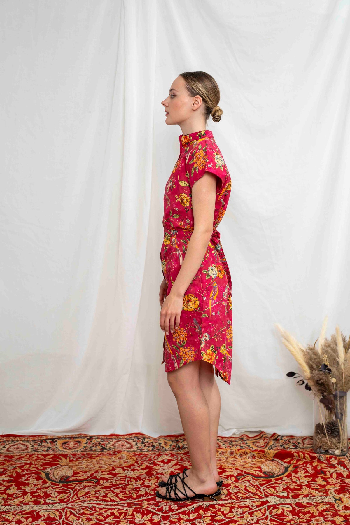 שמלה באורך מידי, בגזרת אוברסייז נינוחה, צווארון סיני, כפתורים לכל האורך, שרוולי חצי מחמיאים, כיסים צדיים, וחגורה תואמת להדגשת קו המותניים. שמלה על זמנית, הגו-טו המושלם לכל אירוע: יום עבודה, בראנץ' של סופ"ש או יציאה לילית. מתאימה בהחלט גם להריון והנקה.