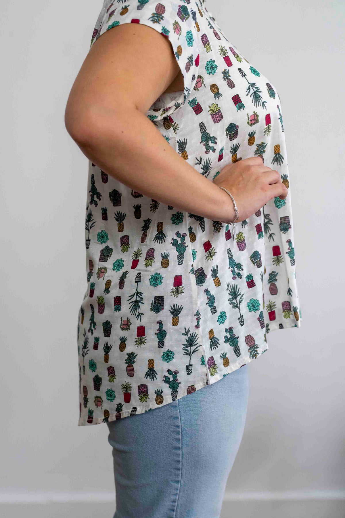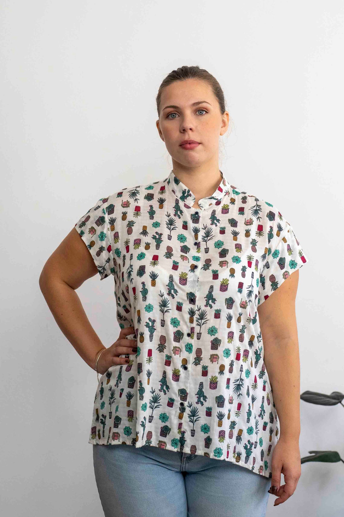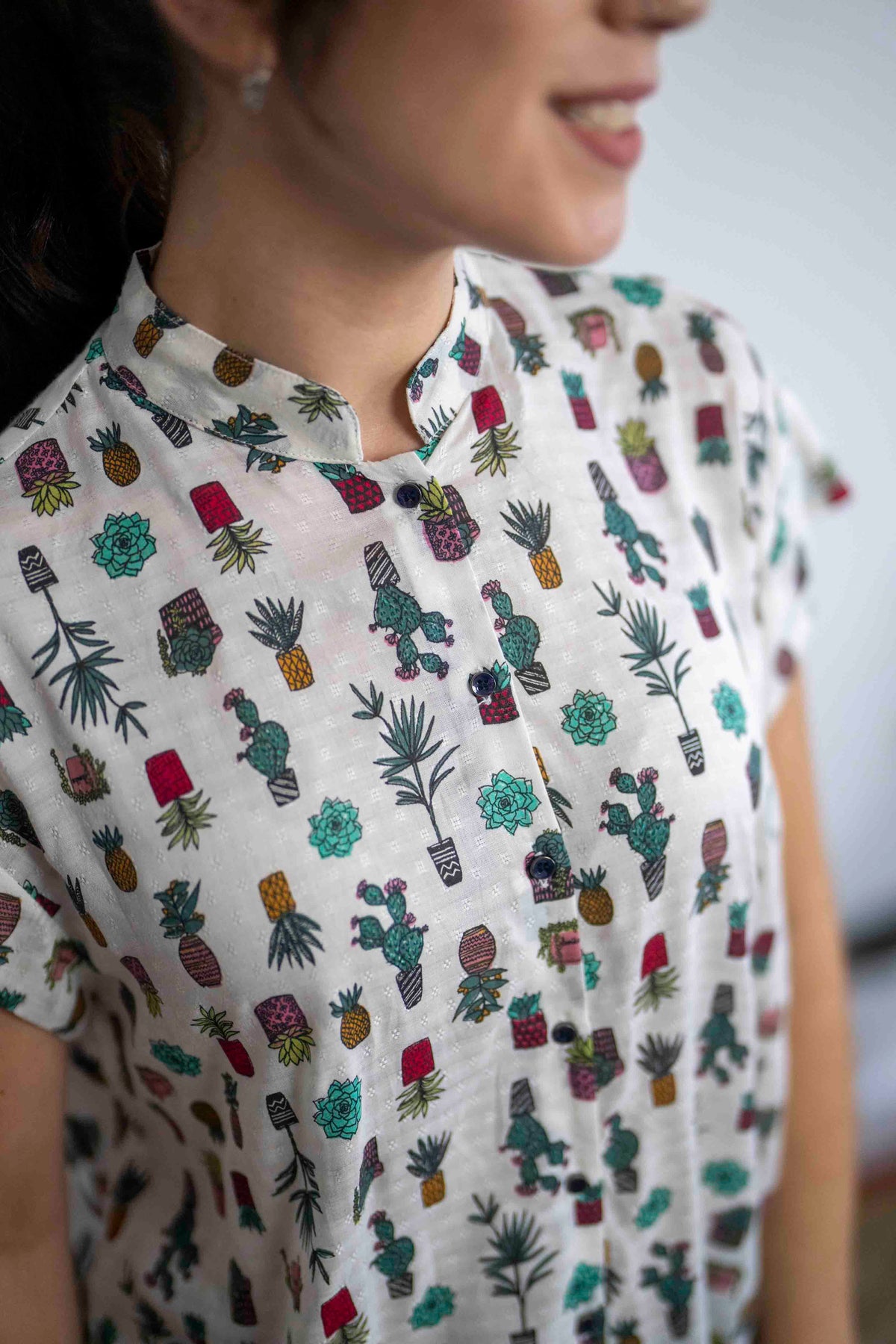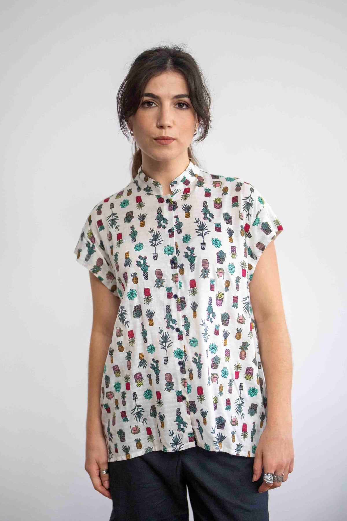 חולצת טוני סוקולנטים היא החולצה הכי עדינה שיש, מעוטרת בדוגמה בבד הויסקוזה הקליל ובאיורים של סוקולנט כמובן.