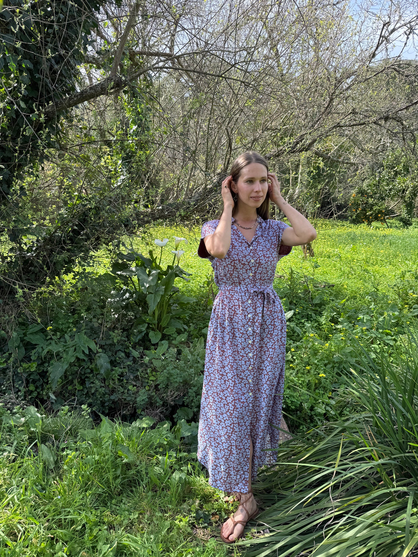 שמלת מקסי אוברסייז זכיתי לאהוב היא שמלה כזו שתלבשי שוב ושוב ושוב, היא עשויה 100% ויסקוזה מודל המדמה משי, דקיקה ונעימה ובעלת צבעוניות קרירה של תכלת וחום - אחד השילובים האהובים עלינו.