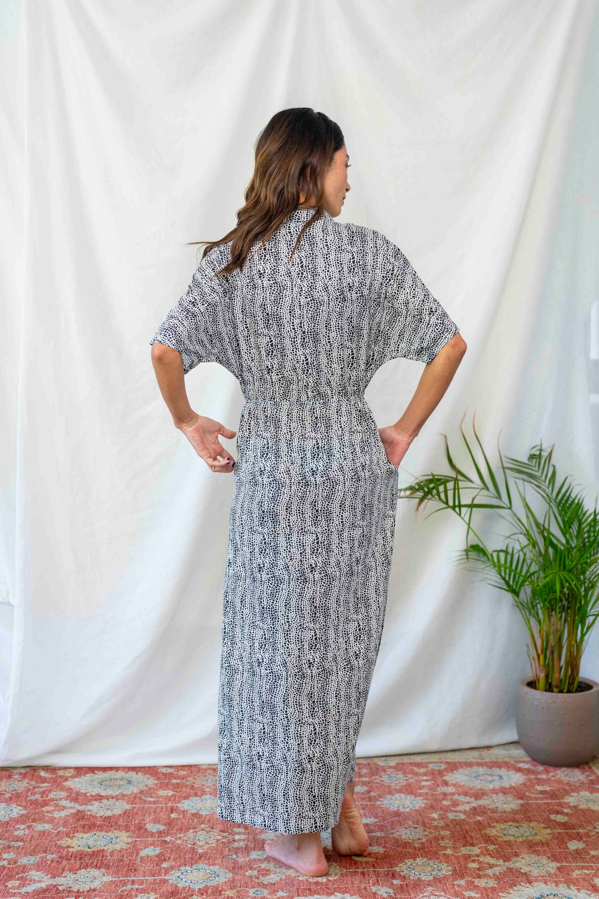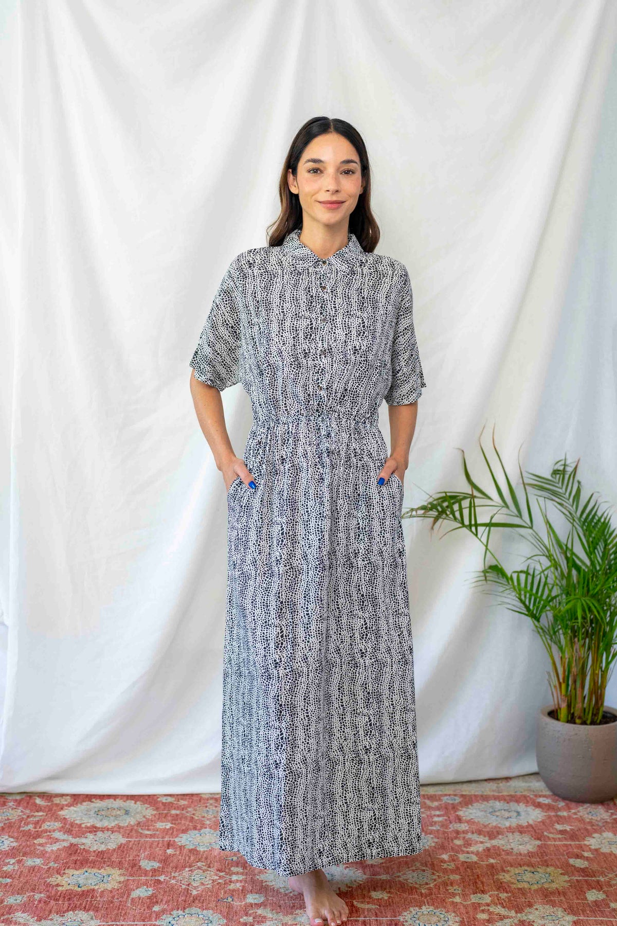 שמלת קיוטו היא שמלת מקסי מדהימה עם שרוך מובנה במותן, שמעניקה לך נוחות ואופנתיות בו זמנית. השמלה מגיעה עם שרוולים יפניים רחבים וצווארון קלאסי, המעניקים מראה מודרני ומחמיא. הכפתורים המובנים לאורך החזה מאפשרים להשתמש בשמלה גם בתקופת ההנקה, מה שהופך אותה לבחירה מושלמת לאמהות. בנוסף, השמלה מגיעה במידות נדיבות וכוללת כיסים צידיים, המוסיפים לה פרקטיות ונוחות.