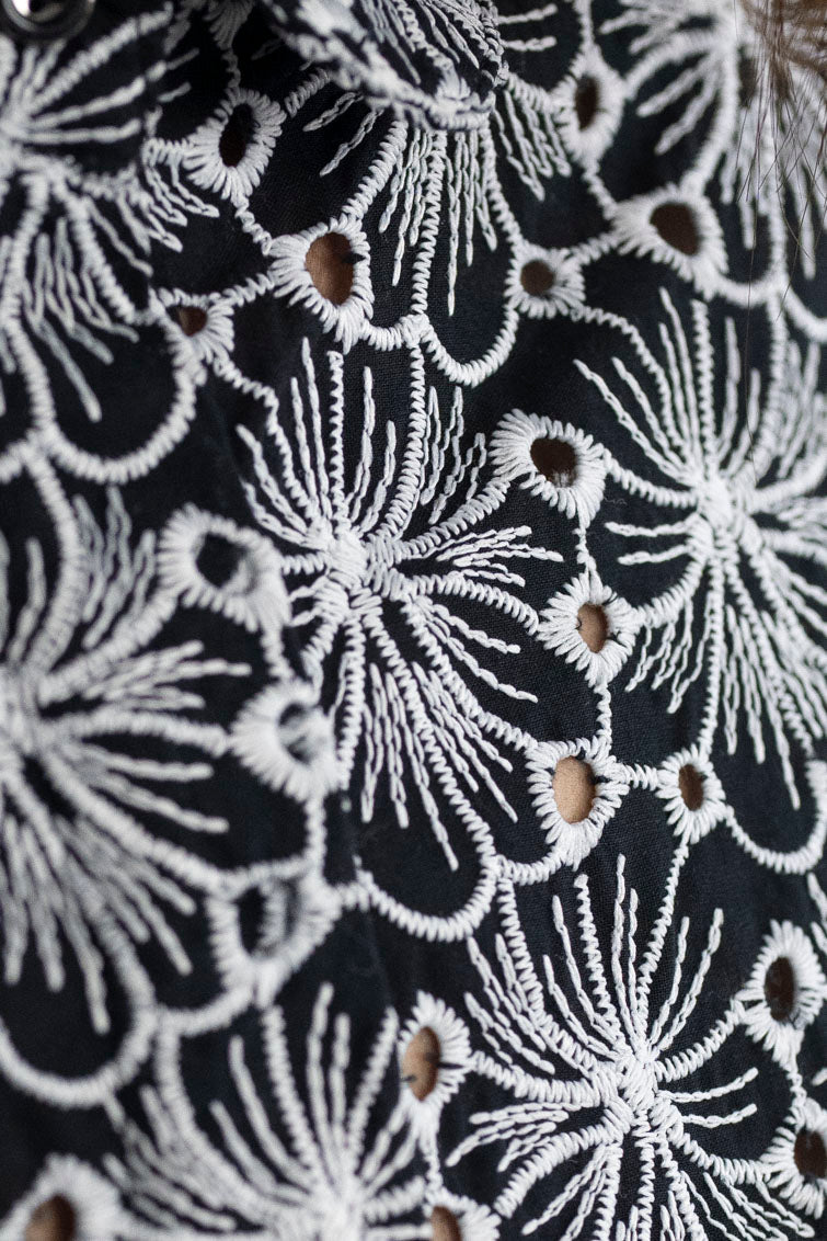 שמלת גיישה פרחים שחור לבן