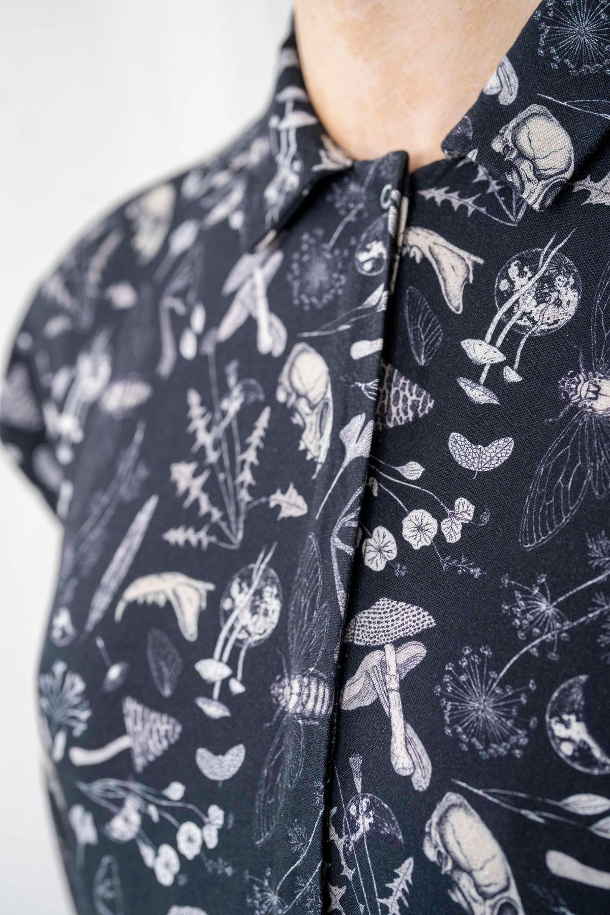 שמלת טוקיו פטריות אחרי הגשם מקושטת במוטיבים של יער, פטריות וצמחים.