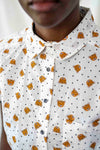 חולצת דריה גורים ונקודות היא אחת החולצות הכי מתוקות שאי פעם נולדה, עם רק לבן וראשי דובונים ונקודות פולקה קטנות.