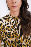 השמלה מעוטרת בחברבורות ובהדפס מנומר גדול ודומיננטי שתופס מקום בנוכחותו, ובעלת צווארון סיני ייחודי. זוג כיסים צדדיים וחגורה תואמת משלימים את המראה, ומאפשרים התאמה לכל סגנון.