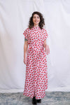השמלה מעוטרת במוטיבים של אבטיחים מתוקים, בצבעוניות פסטלית של ורודים, ובעלת צווארון סיני ייחודי. זוג כיסים צדדיים וחגורה תואמת משלימים את המראה, ומאפשרים התאמה לכל סגנון.