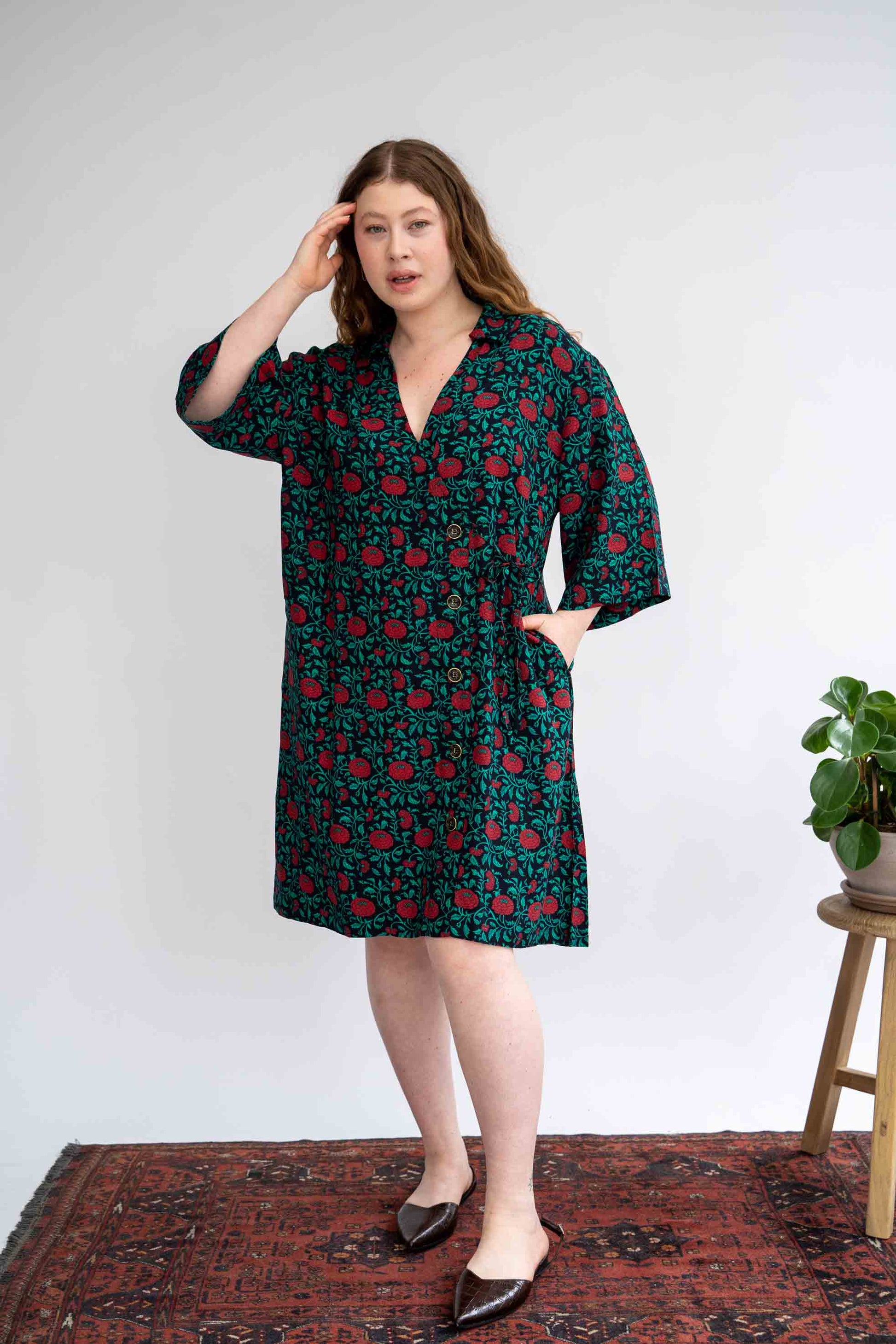 שמלת דומו דליה אדומה הכי רומנטית על זמנית, היא שמלת אוברסייז מיוחדת עם מחשוף וי עמוק, צווארון קטן ועדין, כפתורים דקורטיביים ושרוך וכמובן זוג כיסים צידיים.