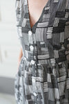 שמלת יולי מונוכרומטית בעלת מוטיב גאומטרי מעניין, בצבעוניות של שחור ולבן. שמלת יולי היא הפתרון האידיאלי ליום קליל ונעים, מעניקה נוחות מירבית ומראה מהמם בכל אירוע. השמלה באורך מידי, בעלת שרוולים ועם מפתח וי מושלם. הכפתורים הדקורטיביים לכל אורך השמלה מעניקים ביטחון וסטייל, ויש לה זוג הכיסים הצידיים מוסיפים פרקטיות. הגומי בגב מאפשר נוחות מרבית ומדגיש את המותן בצורה מחמיאה.
