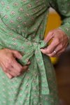 שמלת אלכס נסיכת המזרח בעלת מוטיב פרחוני עדין ועיטורי זהב, שמלת אלכס הנפלאה, בגיזרת מעטפת מחמיאה, בעלת שרוך פנימי ששולט בהידוק השמלהש לגופך, זוג כיסים צידיים וסיומת קסומה.
